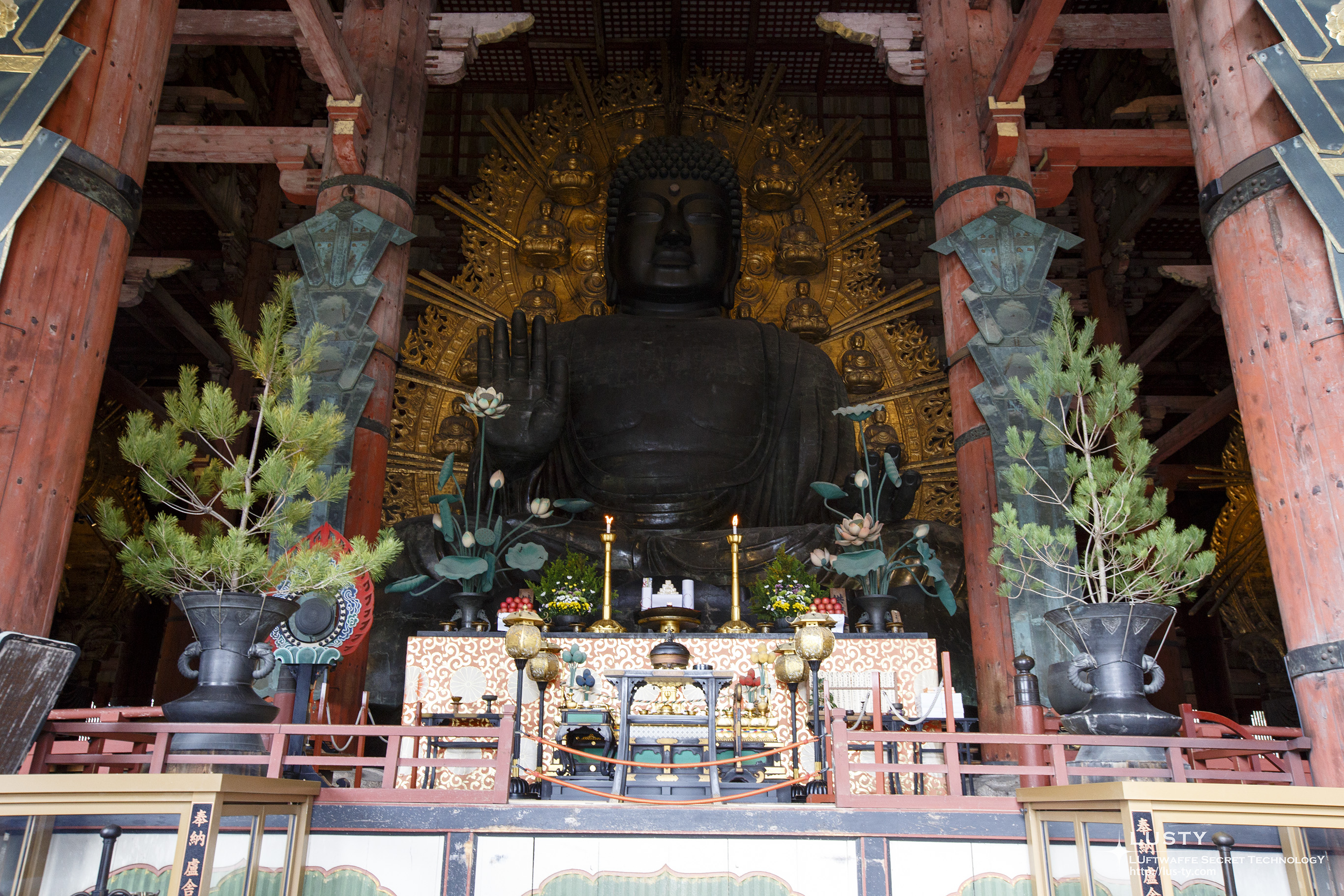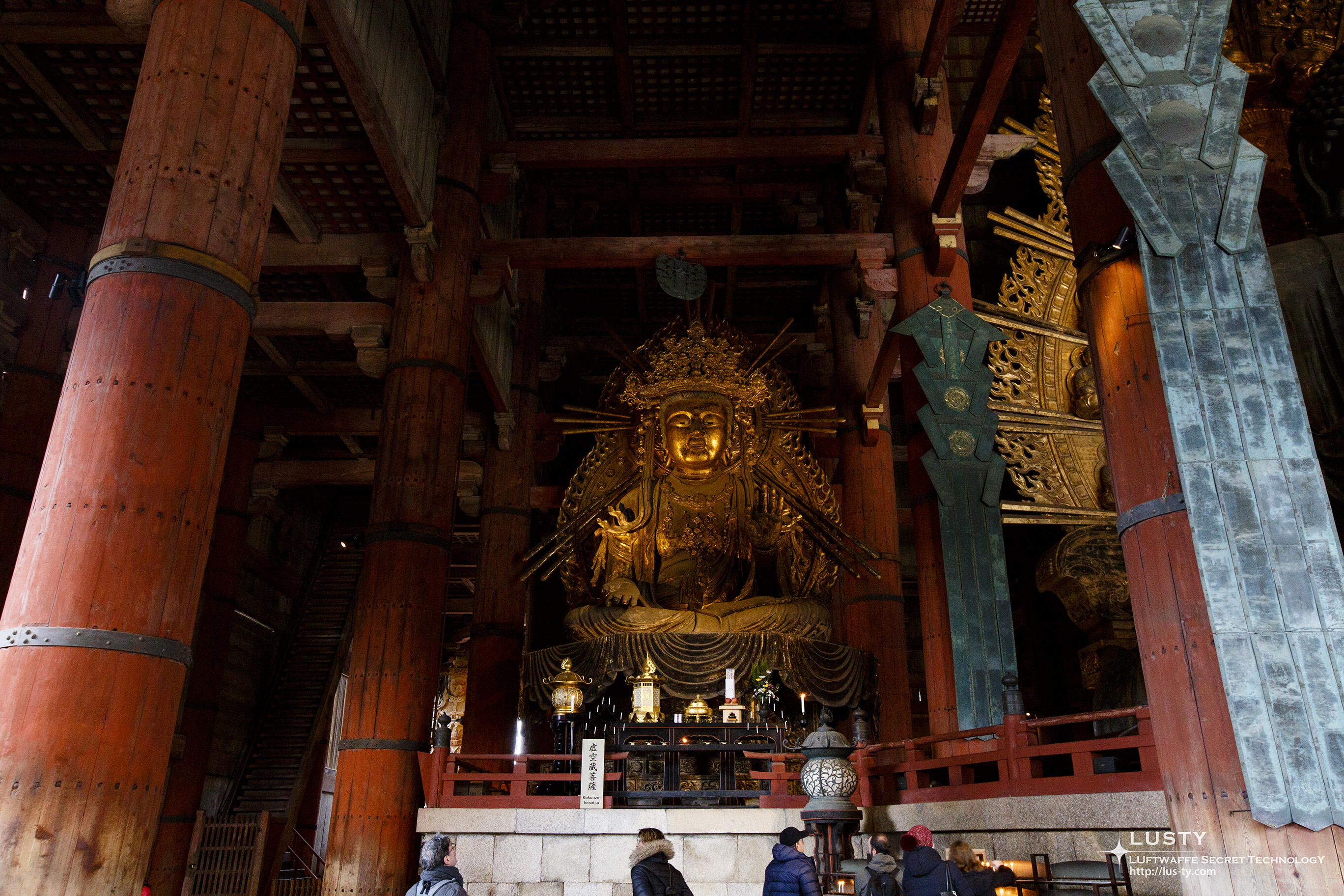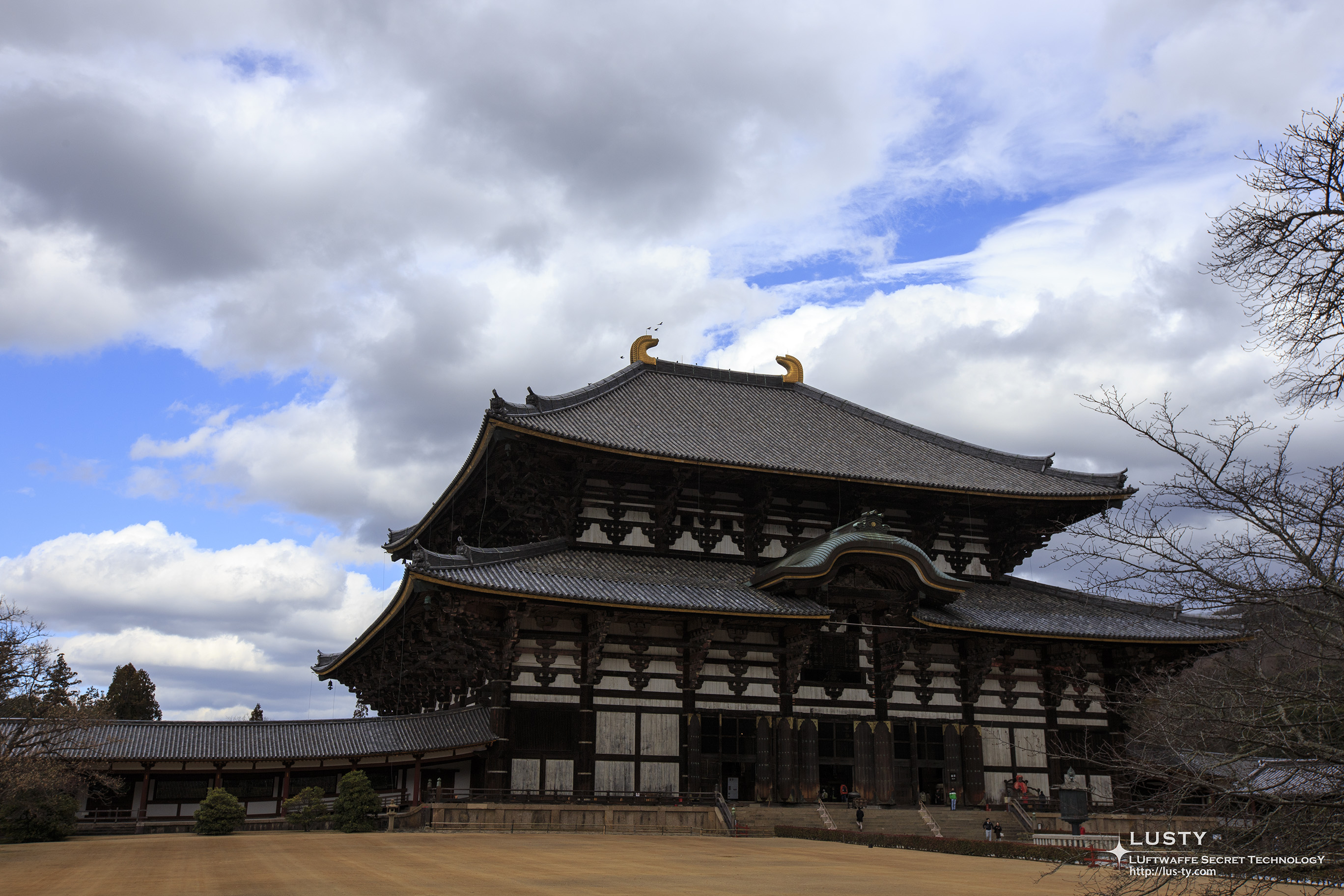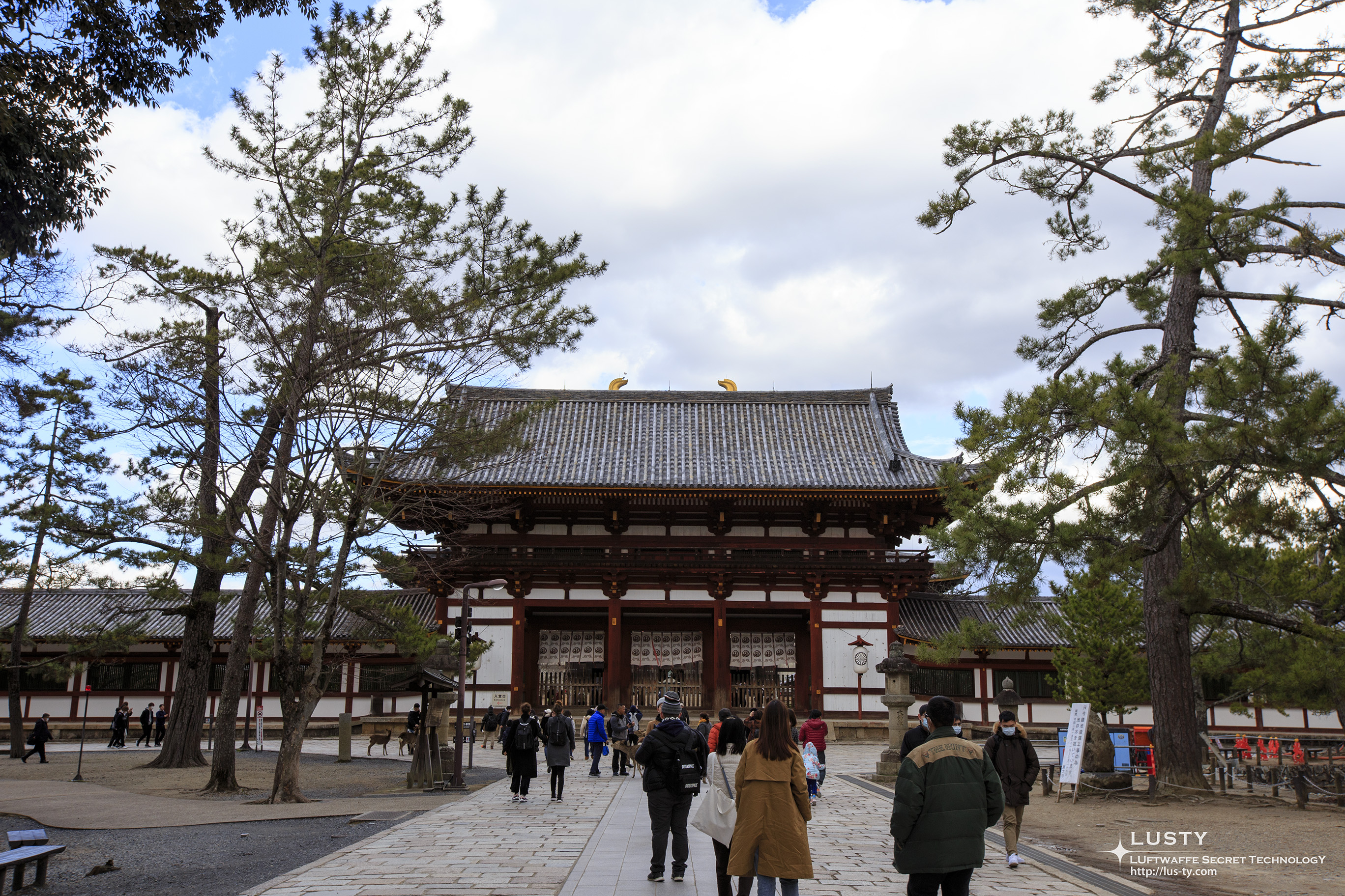 대불전을 향해 발걸음을 옮긴다. 이곳의 대불전은 굉장히 큰 규모로 종종 '세계 최대의 목조 건축물'로 일컬어지기도 하는데, 20세기 이후에 현대 기술로 건설된 목조 건물 중에는 스페인의 메트로폴 파라솔처럼 이 곳보다 큰 목조 건축물도 있어서 세계 최대는 아니라고 한다. 하지만 현재의 대불전이 에도 시대(1709년)에 30%정도 축소된 규모로 재건된 것이라고 하니, 원래의 대불전은 세계 최대였을수도 있겠다.