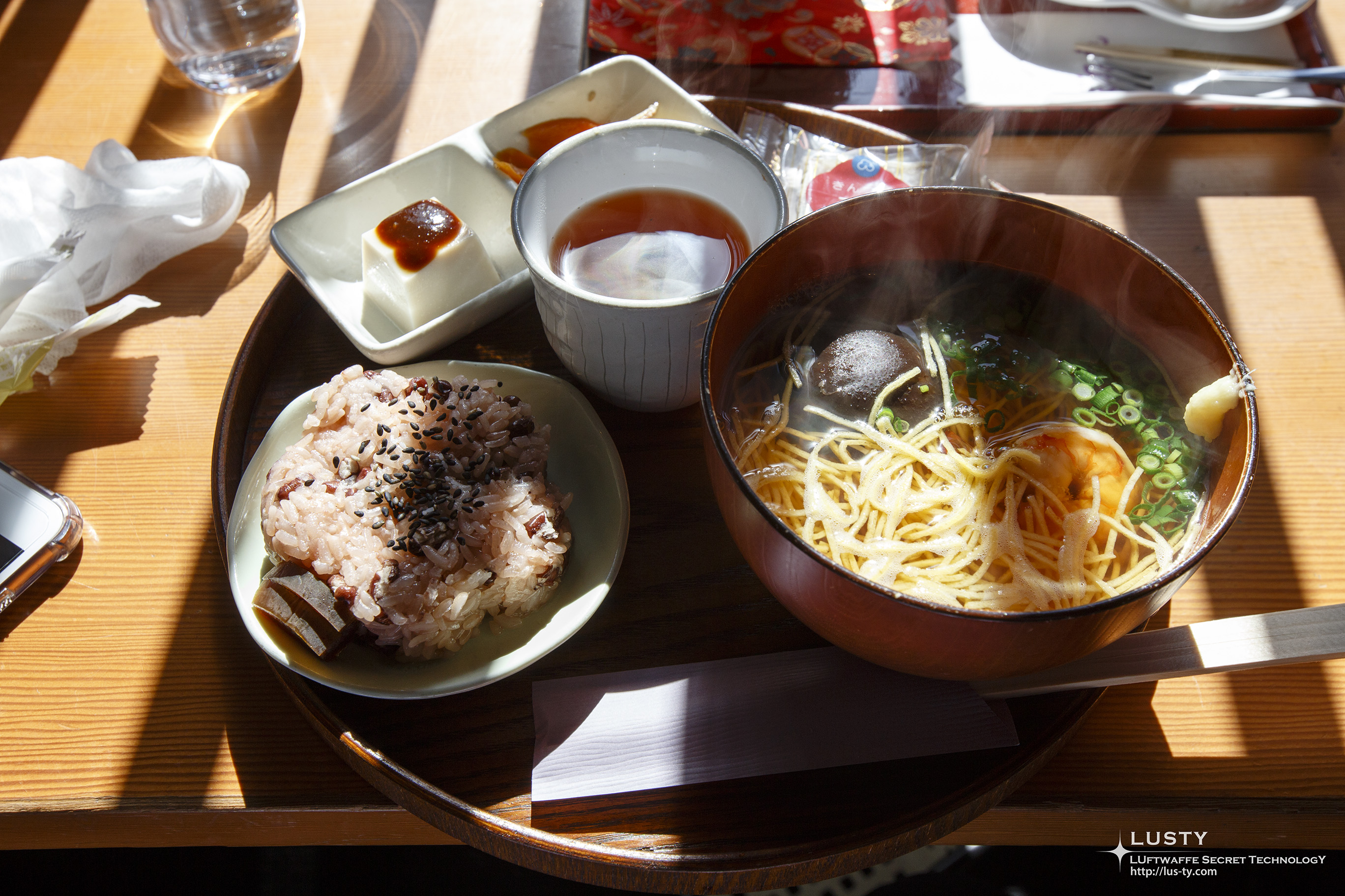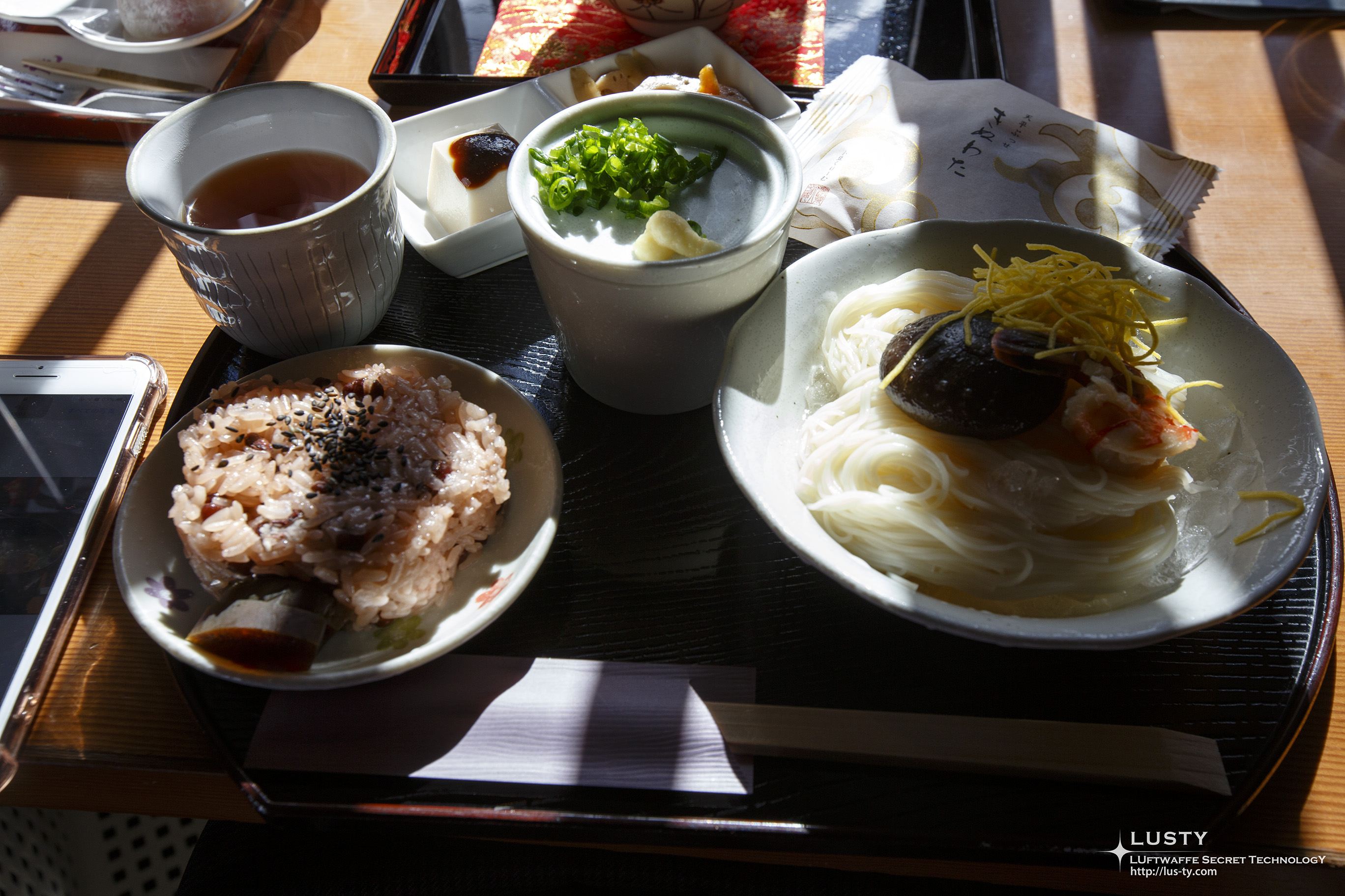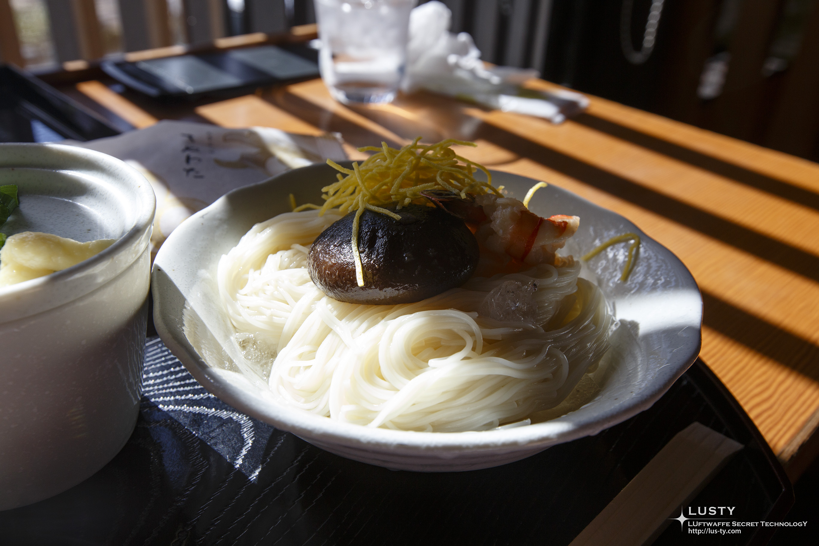 소면이 나오는 런치의 미와소면 세트. 냉・온을 고를 수 있어서 하나씩 주문해 보았다. 이쪽은 온면.