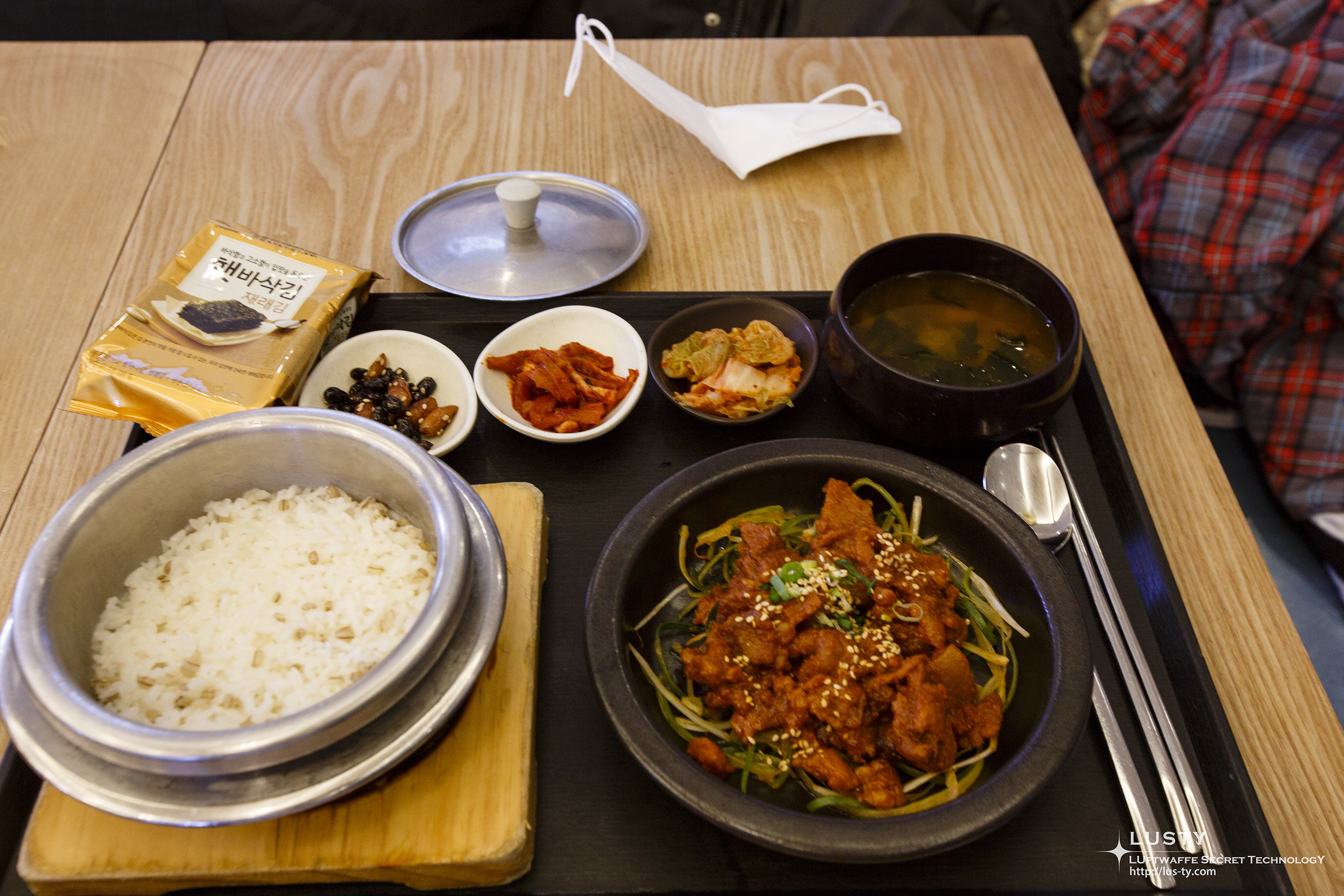 크로스마일카드로 CJ푸드빌에서 한국인의 제육볶음을 주문. 오랜만에 먹는 매운 음식이다.
