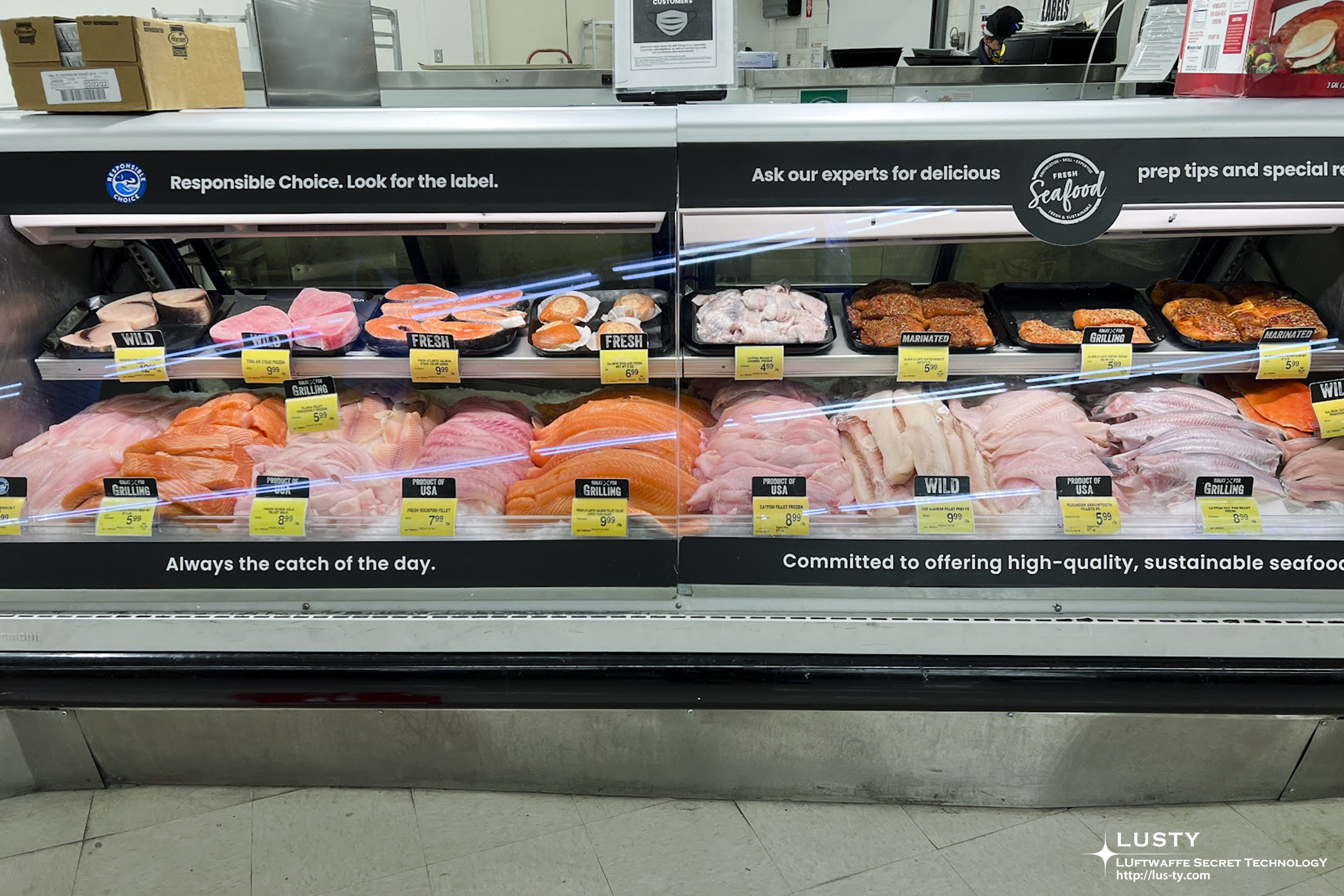 각종 생선들. 필레를 떠 둔것들인데 상당히 저렴하다. 마리네이드된것도 있고 생으로 파는것도 있는데, 연어 필레 하나에 10불 언저리인걸 보니 상당히 저렴하다. 한국에서는 코스트코에서 사도 대략 3만원대였던 것으로 기억하는데(물론 요즘은 우크라이나 전쟁으로 인해 훨씬 더 올랐지만) 미국이 식자재 가격은 상당히 저렴해서 요리를 직접 할 수 있으면 저렴한 가격으로 맛있는걸 많이 먹을 수 있겠다는 생각이 들었다.