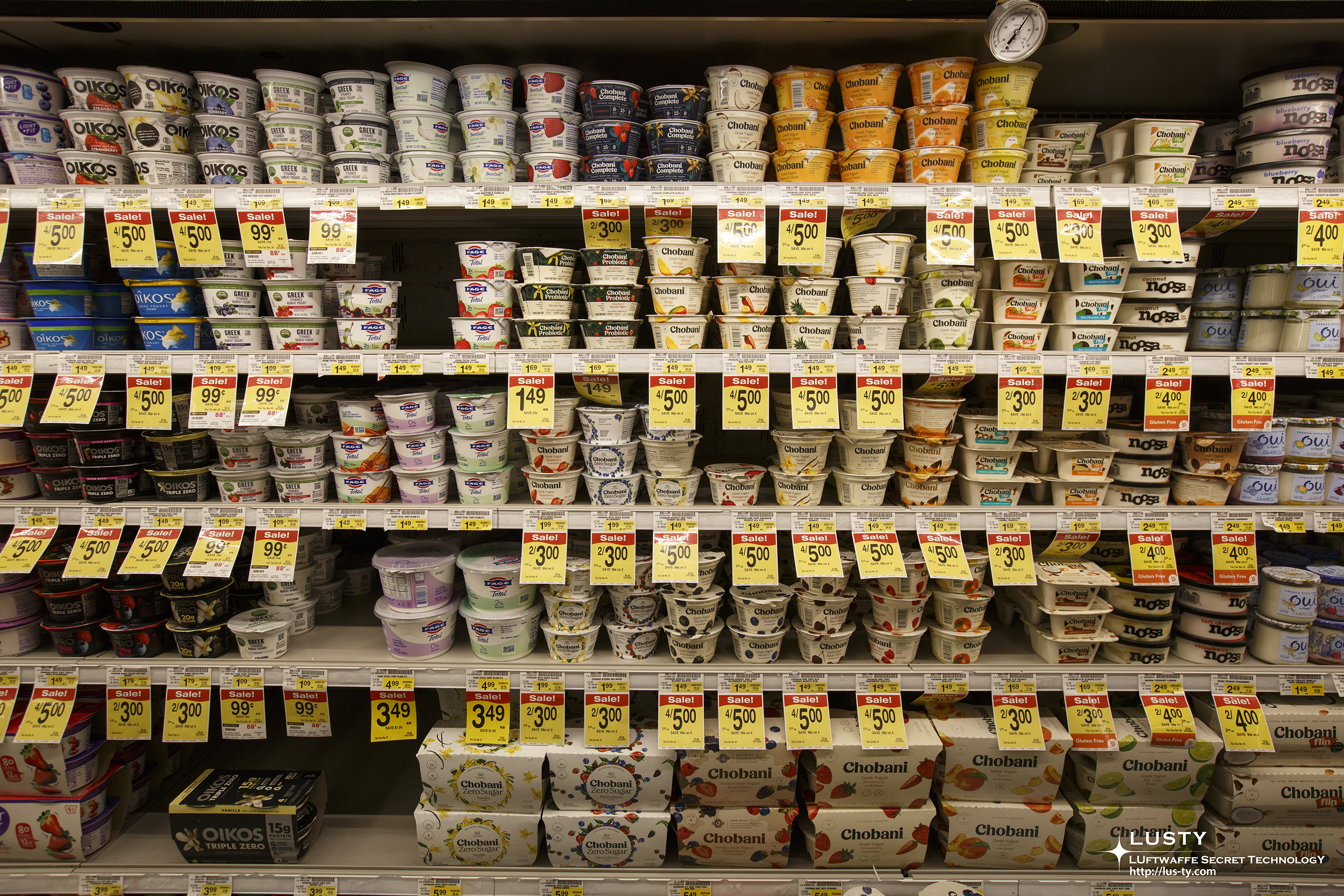 갖가지 요거트와 유제품들. 한국에 있는것도 있고, 처음보는 것도 있는데 여기쯤 와서는 정말 참을 수 없어져서 블루베리 요거트를 사 보았다.