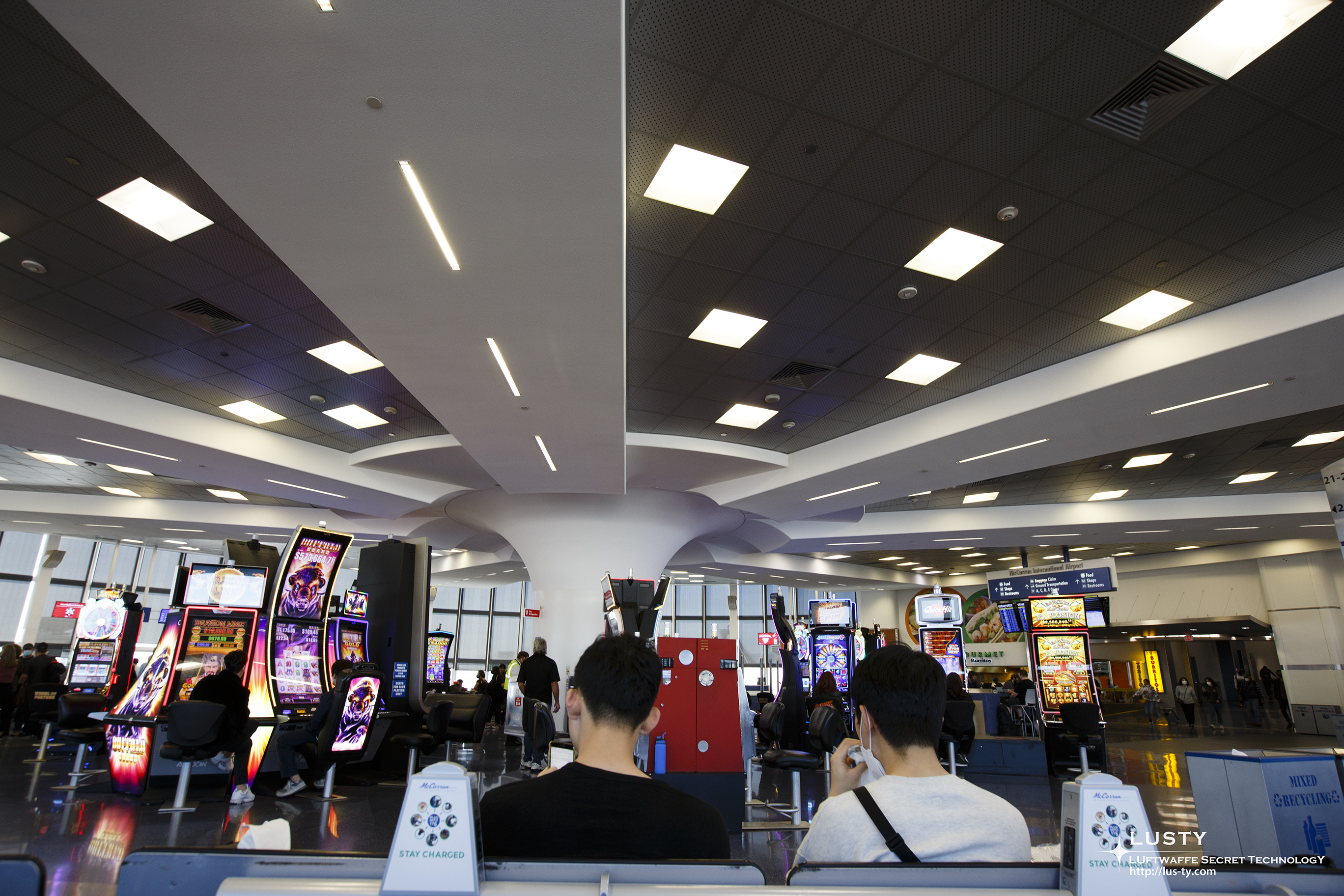 결국 그냥 벤치에 앉아 기다린다. 베가스답게 공항 게이트 바로 앞까지 슬롯머신이 있다.