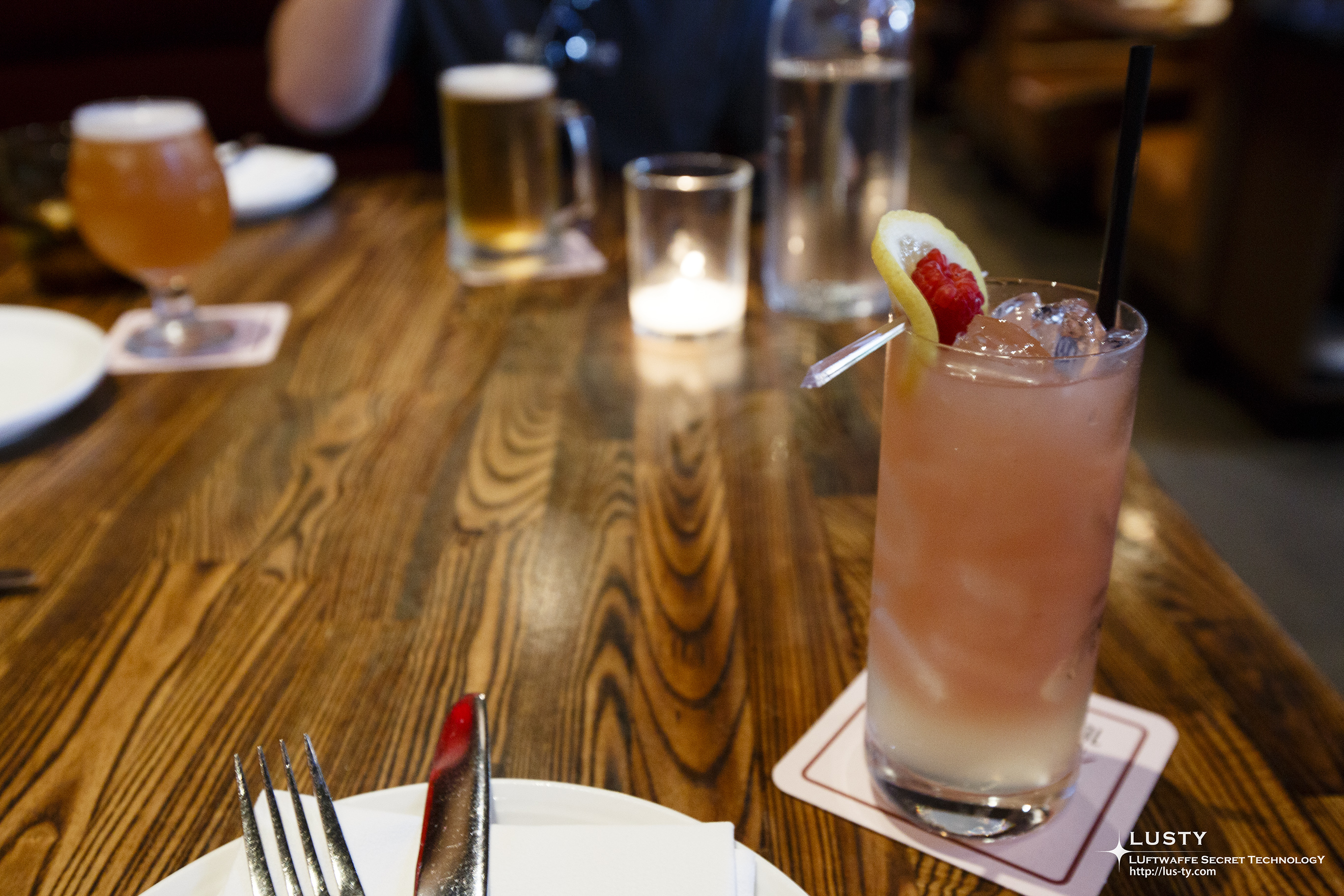 일단 목을 축이기 위해 음료를 주문해 본다. 운전을 해야 하니 술을 못 마셔서, 칵테일 중에 라즈베리 필즈라는 논 알콜 칵테일을 주문했다. 라즈베리, 레몬, 민트와 스파클링 냉침차로 만든 달달한 칵테일인데 살짝 산미가 있어서 고기들과 잘 어울렸다.