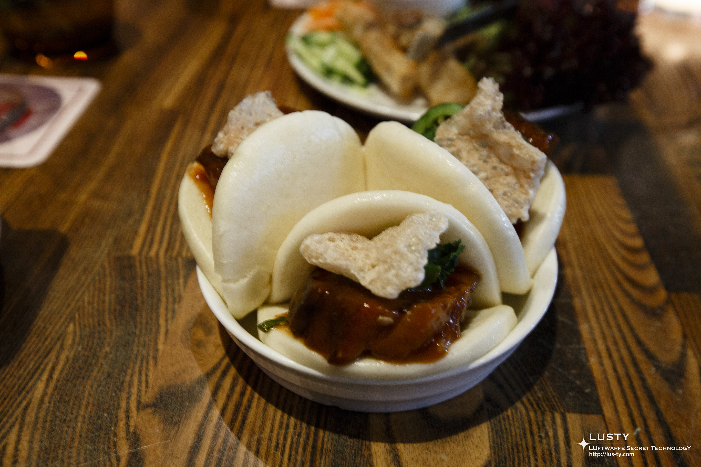 다음은 북경돼지 삼겹살과 바오 번이라는 이름을 가진 차슈바오였다. 이건 맛보다 퍼포먼스가 돋보인 요리였는데, 연기를 유리병에 가득 채워서 가져온 뒤에 테이블 앞에서 열어서 연기를 흩뿌리는 퍼포먼스가 좋은 반응을 얻었다. 생각해보니 가게 이름답게 요리들이 'International'하다.