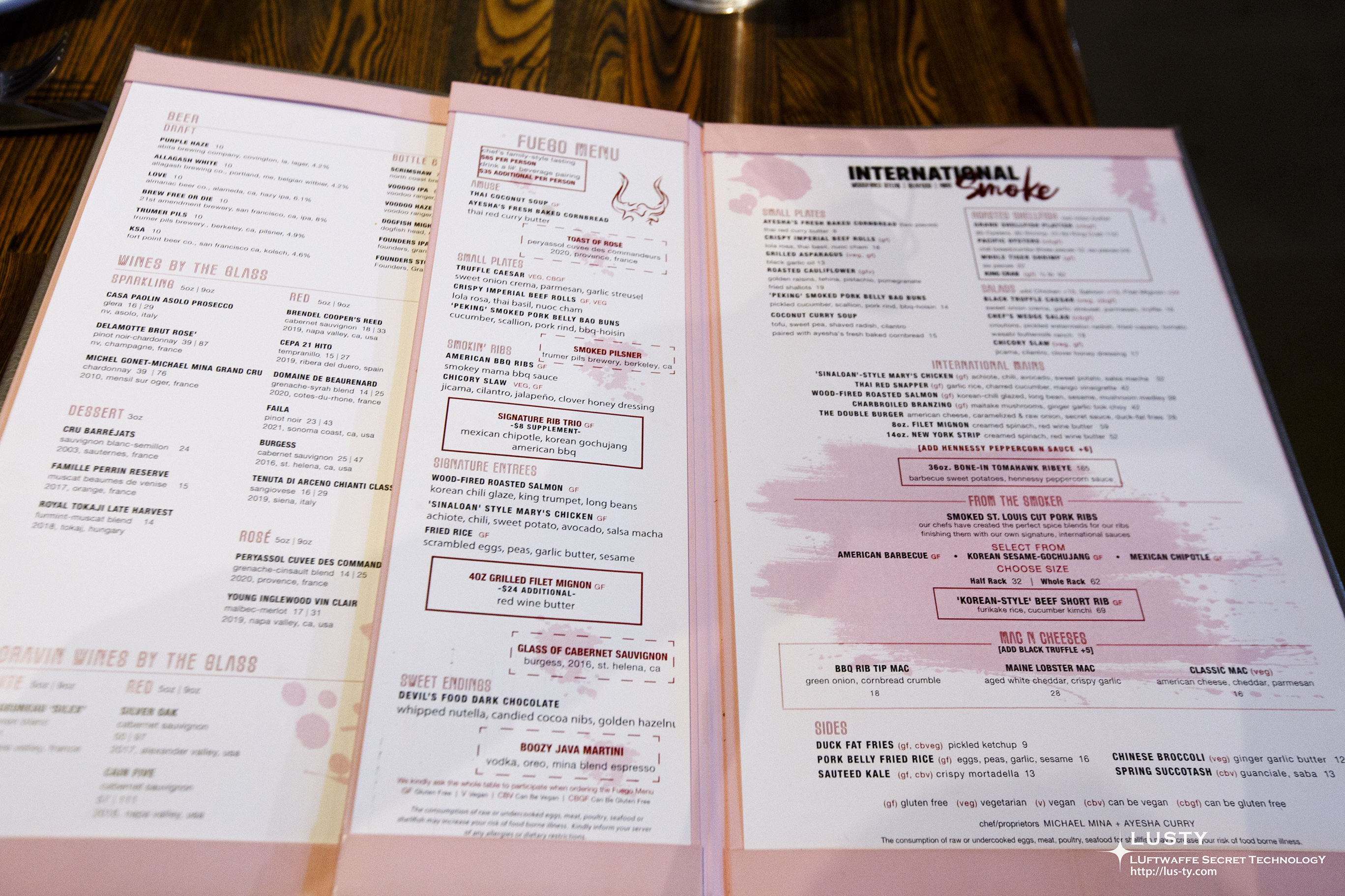 메뉴. 여러가지 단품 메뉴들이 있는데, Fuego menu 라고 해서 Chef's family tasting course라는 코스 메뉴를 주문했다. 이걸 주문하면 단품들을 조금씩 맛볼 수 있어서 이것으로 결정했다. 아뮤즈, 애피타이저 격인 스몰 플레이트, 스모킨 립, 시그니처 앙트레, 디저트 순으로 제공된다. 메뉴는 홈페이지 에서 확인할 수 있다.