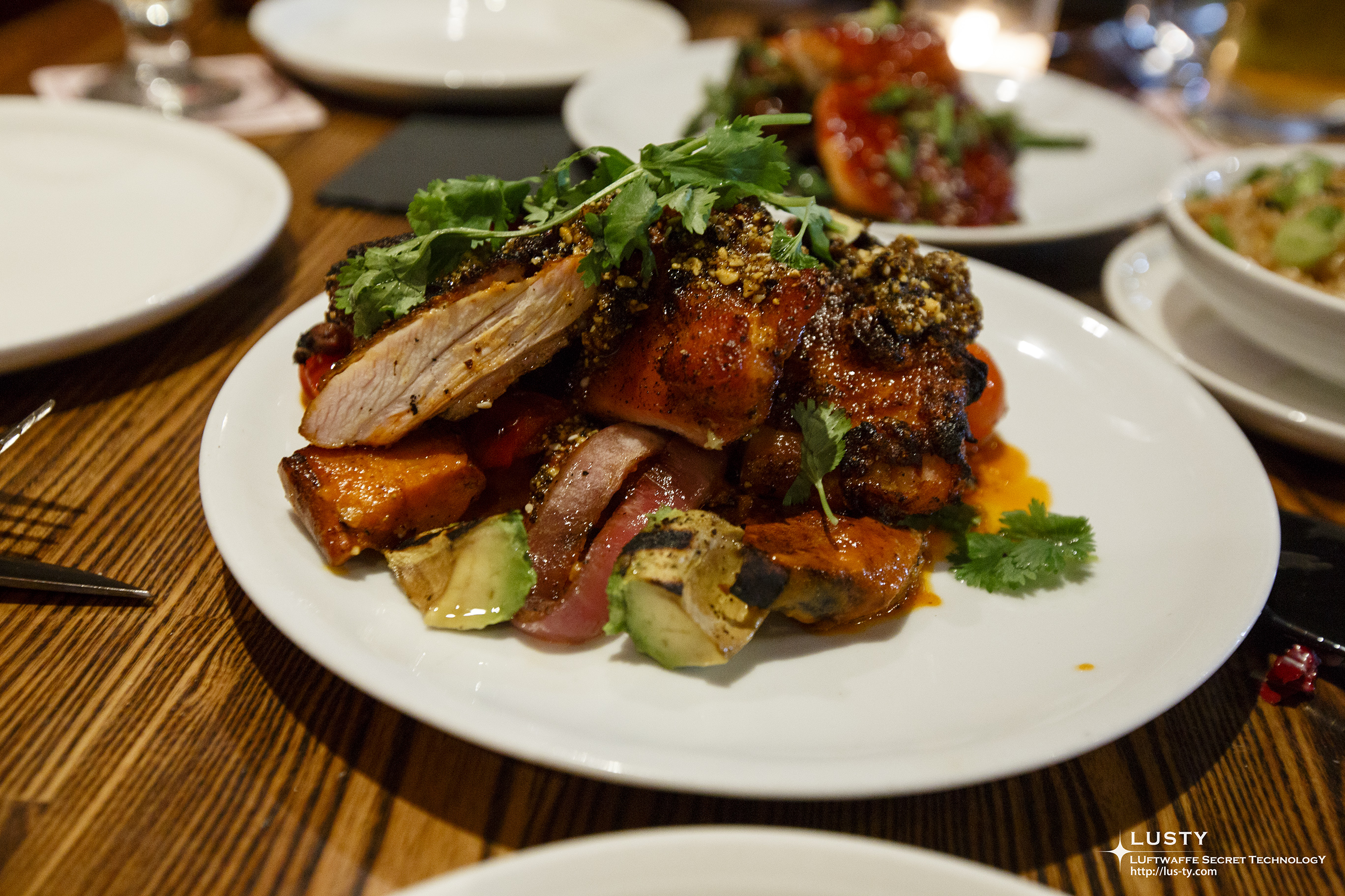 그 다음으로는 시그니처 앙트레가 세 종류 서빙된다. 먼저 'SINALOAN'스타일 Mary's 치킨인데, 메리스 치킨이 뭘까 하고 찾아보니 캘리포니아에 있는, 닭을 방목해서 키우는 목장이었다. 결국 시날로아 치킨인데, 감귤류과 칠리 소스에 절인 다음 직화로 구워낸 멕시코의 스트리트푸드라고 한다. 직화로 구워내서 그런지 겉바속촉한, '크리스피 앤 텐더'한 닭요리였는데 상당히 복합적인 맛이 났다. 멕시칸 요리답게 고수가 나오는데, 고수와도 잘 어울렸다.