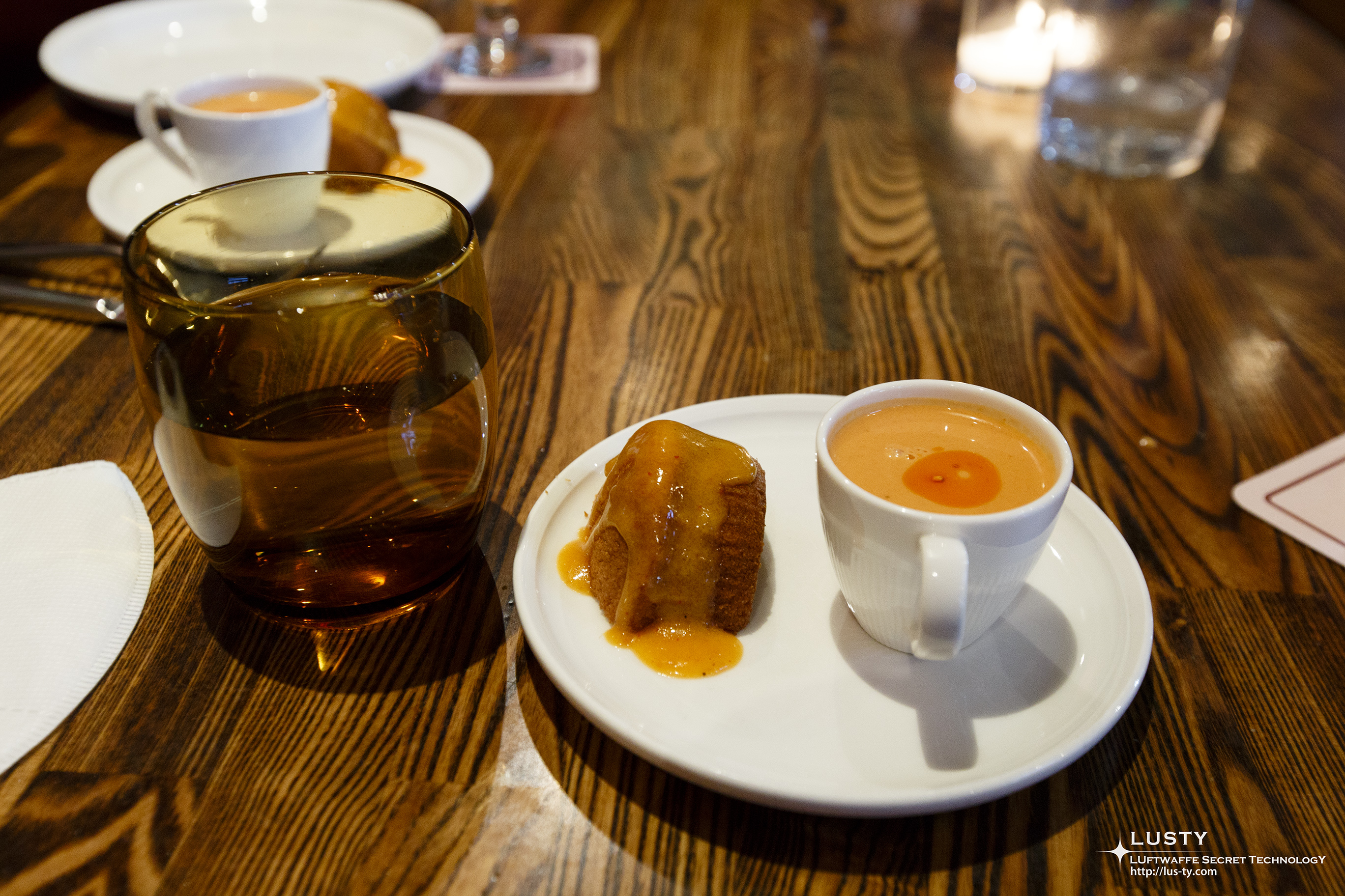먼저 아뮤즈로 나온건 타이 코코넛커리와 카레 콘브레드. 콘브레드가 구수한 옥수수향이 나서 포근함을 준다. 갓 구웠는지 촉촉함이 남아있고 살짝 짭조름한데 텁텁하지 않아서 좋았다. 타이 코코넛커리는 커리를 마실 수 있도록 컵에 제공되는데, 인도식도 아니고 일본식도 아닌, 그 푸팟퐁커리의 그 커리의 질감과 향과 맛이 나서 좋았다. 어뮤즈 하나로 따뜻한 환대를 경험할 수 있었다.