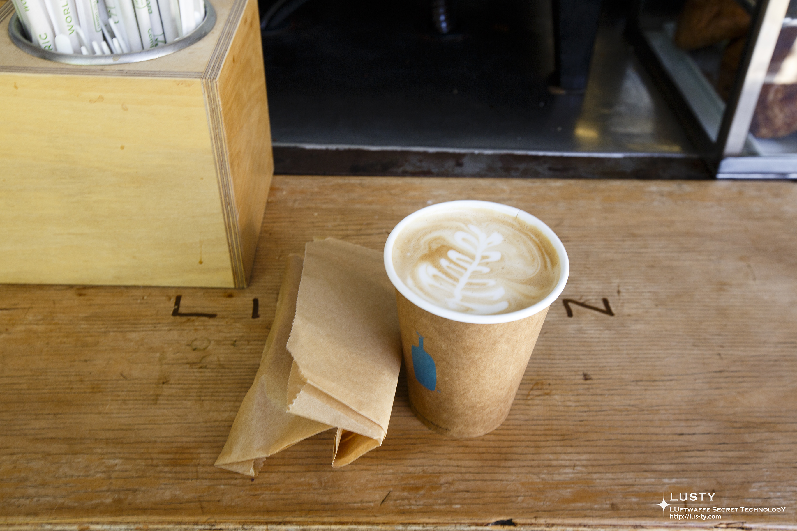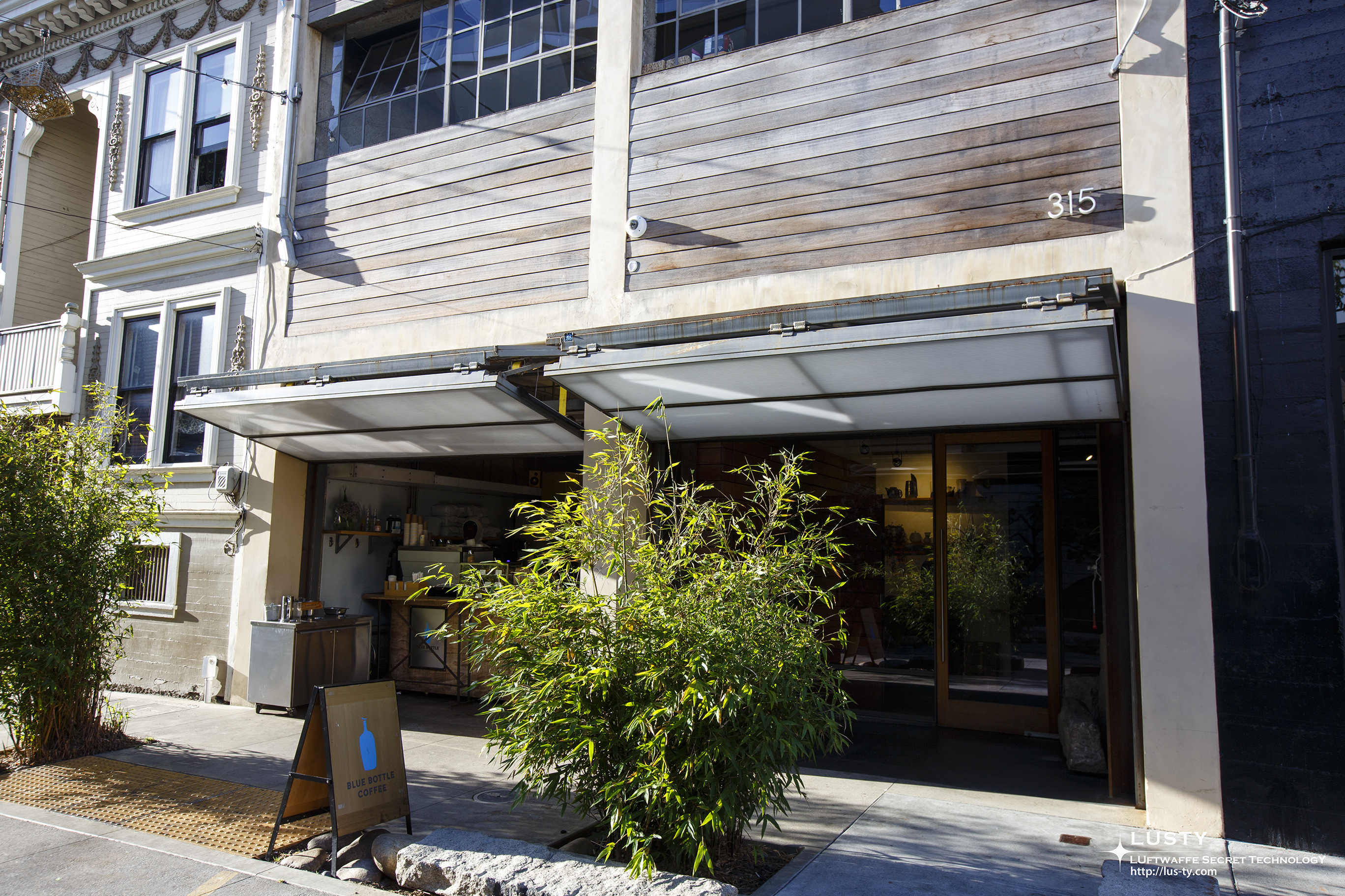 블루보틀에 도착. 헤이즈 벨리 키오스크라고 불리는 이곳은 2005년 문을 연 블루보틀의 첫 번째 오프라인 매장으로, 자리가 있는 카페가 아닌 키오스크로 운영되는 형태이다. 샌프란시스코에서는 가장 오래된 매장으로, 앉아서 마실 수 있는 형태의 카페는 아니지만 여전히 영업하고 있는 가장 오래된 매장이며 블루보틀에서는 이 매장의 이름을 딴 헤이즈 벨리 원두를 판매하고 있다. 이 매장이 오픈하기 전에는 트럭이나 가판에서 커피를 팔거나, 다른 레스토랑에서 블루보틀의 원두를 이용한 커피를 판매하는 방식으로 판매되었다고 한다. 그 중에 한 곳이 1호점으로 알려져 있기도 한 페리 빌딩의 Ferry building Arcade 가판이다. 물론 이때는 이런 가판도 없이 트럭에서 팔았다고 한다.