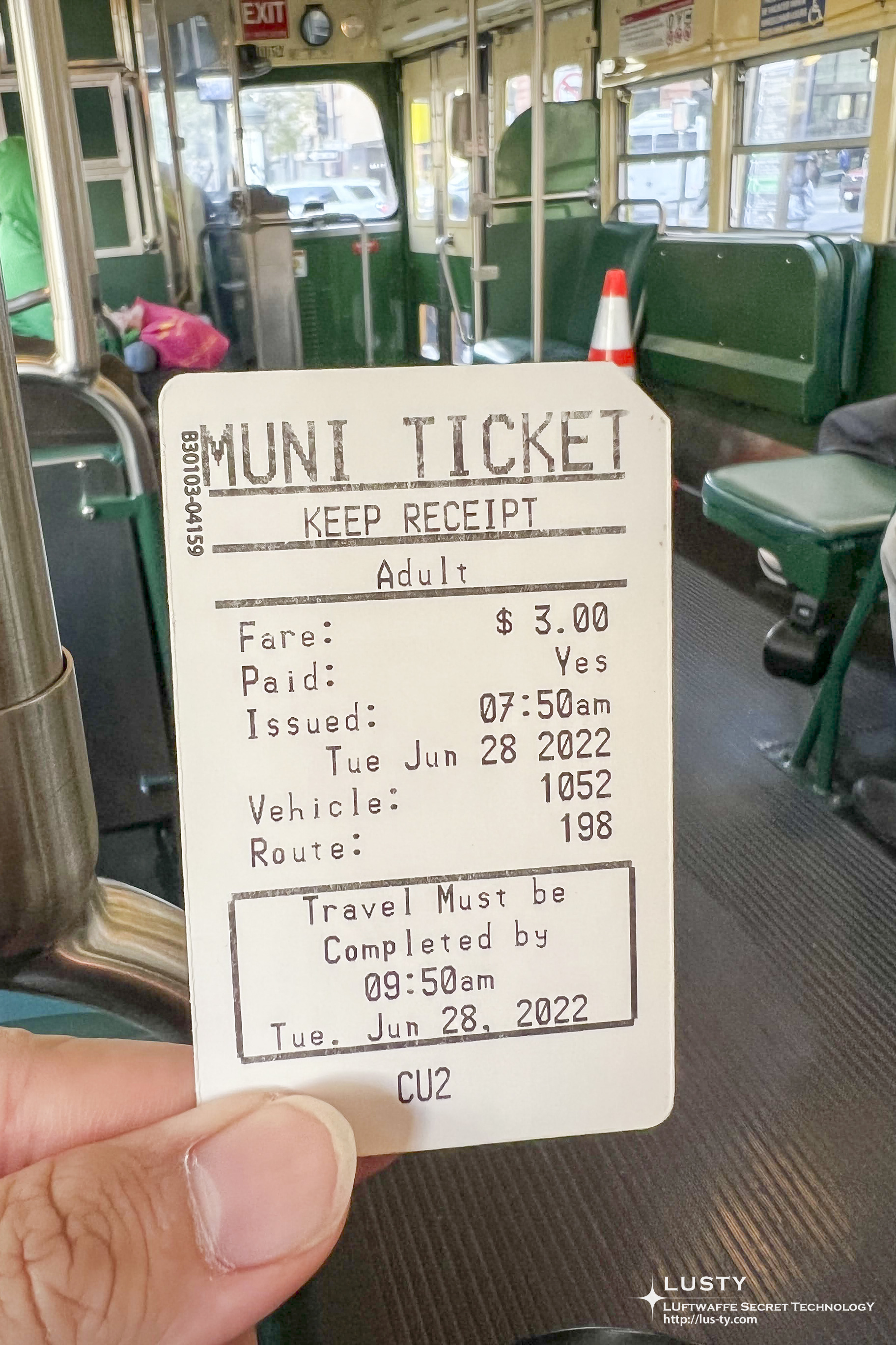 MUNI Tickt. 한 번 탑승은 3달러이고, 탑승하면 2시간동안 MUNI에 포함된 교통수단을 탈 수 있다. 트램을 제외하고 대부분 탑승 가능한 듯 하다. 하지만 종일권은 5달러이기 때문에, 한 번 탑승하는 것 보다는 종일권을 사는 것이 나은 듯 하다.