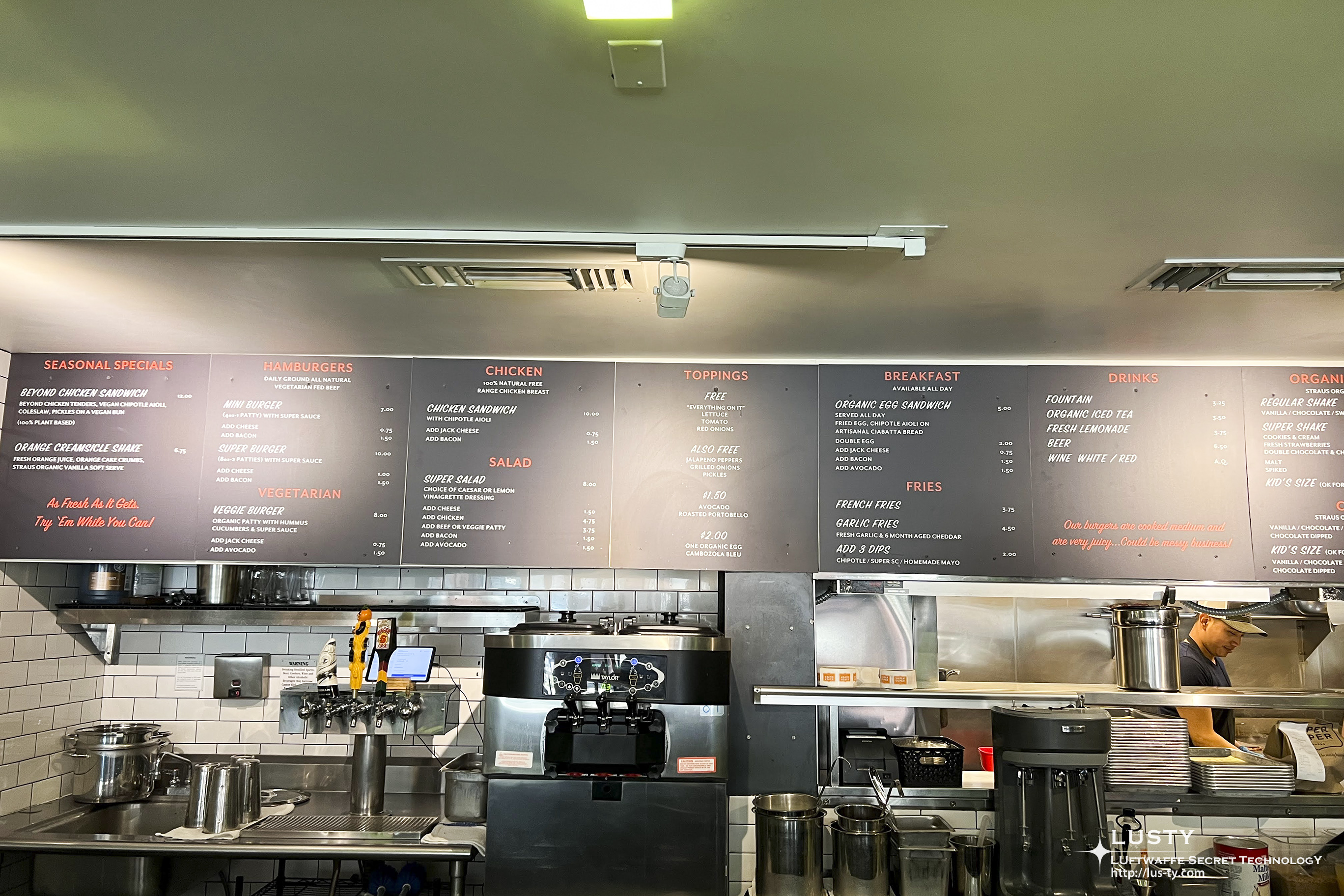 세션을 듣고 점심을 먹으러 SUPER DUPER로 가 본다. 슈퍼두퍼는 샌프란시스코에 주위에 퍼져있는 버거 체인으로 파이브가이즈와 비슷한 위치에 포지셔닝하는 브랜드이다. 이쪽의 경우도 파이브 가이즈처럼 냉동되지 않은 생고기를 사용하고, 버거의 종류도 복잡하지 않고 미니와 슈퍼 두 가지만 있다. 치킨 샌드위치와 베지 버거가 있긴 하지만 주력은 이 두 햄버거라고 볼 수 있다. 마침 서밋 회장 근처에 점포가 있어서 가 보았다.