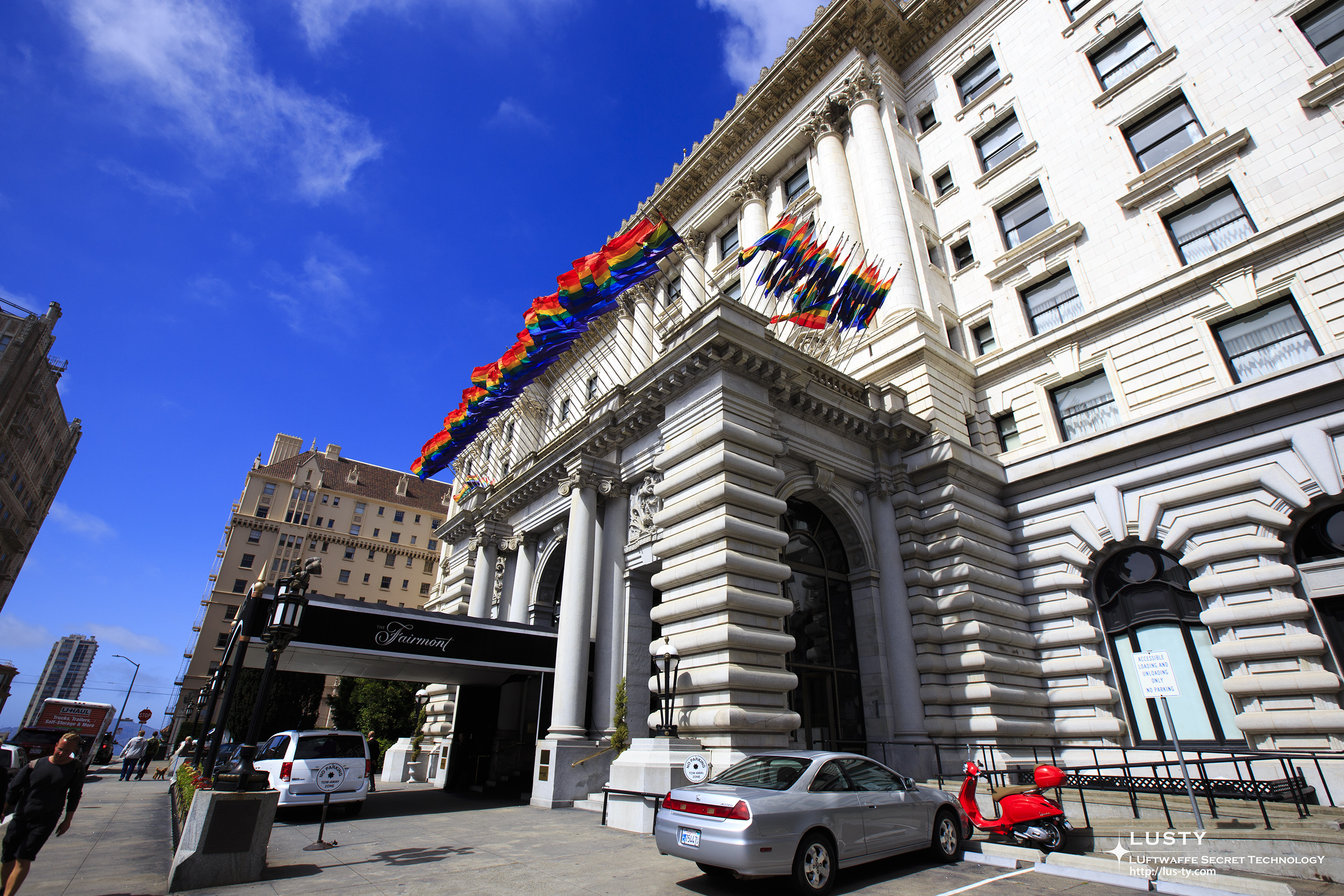무지개 깃발을 잔뜩 꽃아놓은 페어몬트 호텔.