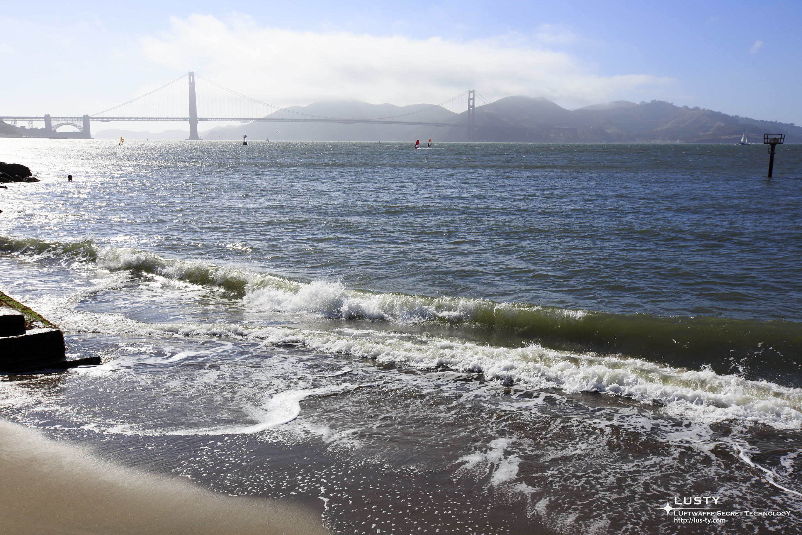 여기는 어디까지나 샌프란시스코 만의 일부긴 하지만, 금문교만 지나면 태평양인데, 태평양에서 한 골목 꺾어 들어온 곳에서 금문교를 조망할 수 있다. 언제나 구름이 끼어 있던 금문교가 오늘은 맑은 하늘을 보여주는게 사뭇 아쉽다.