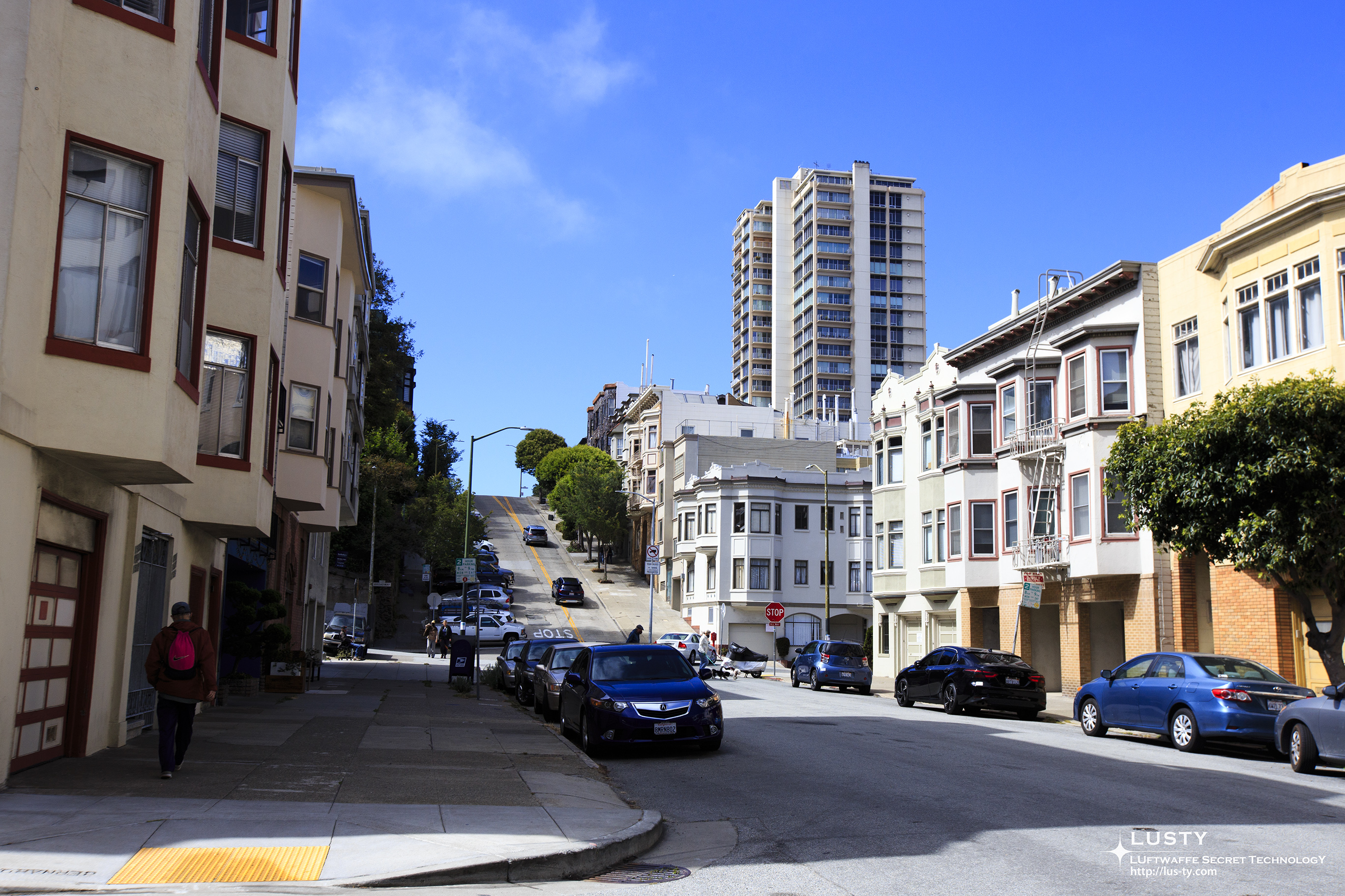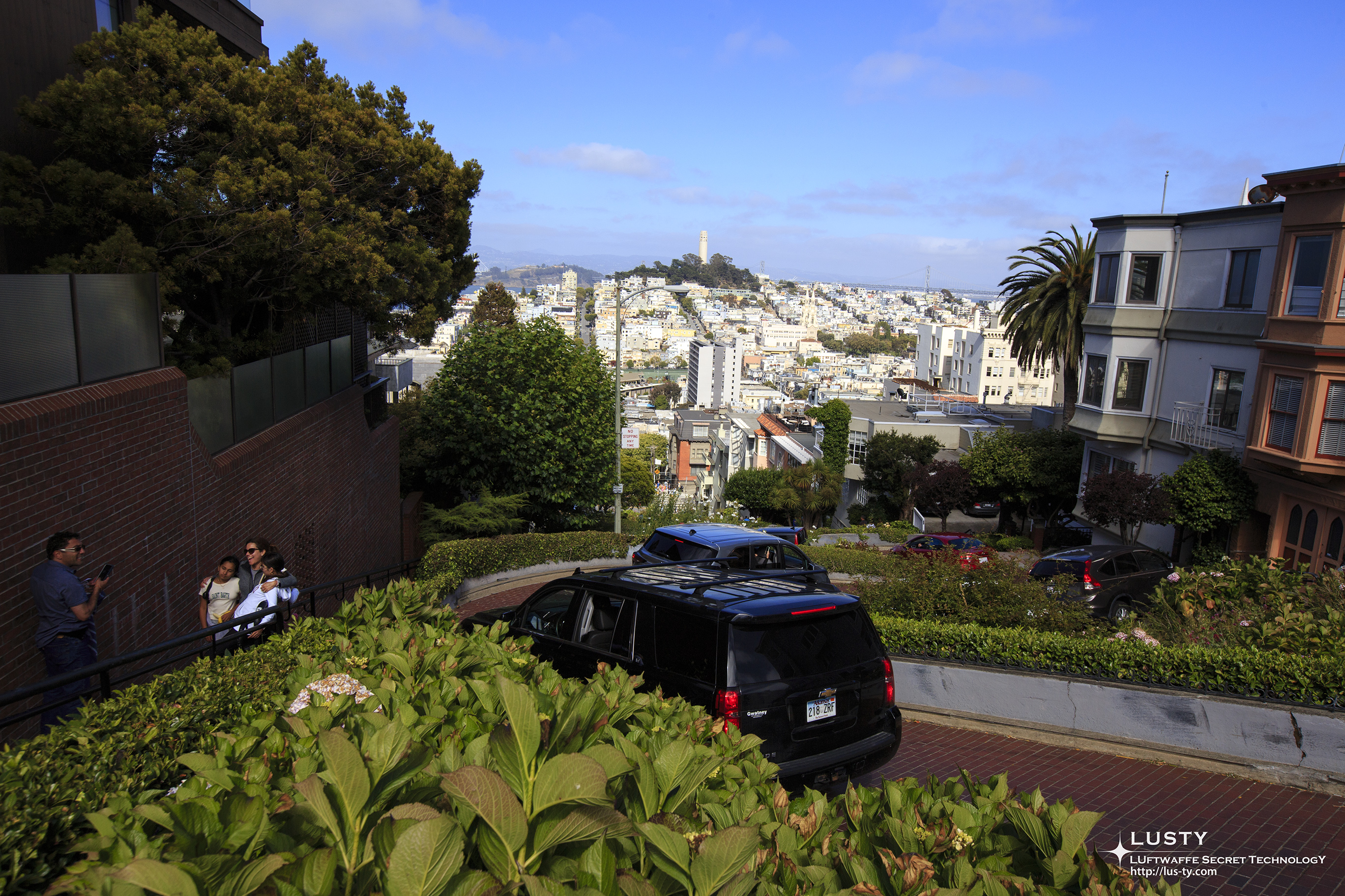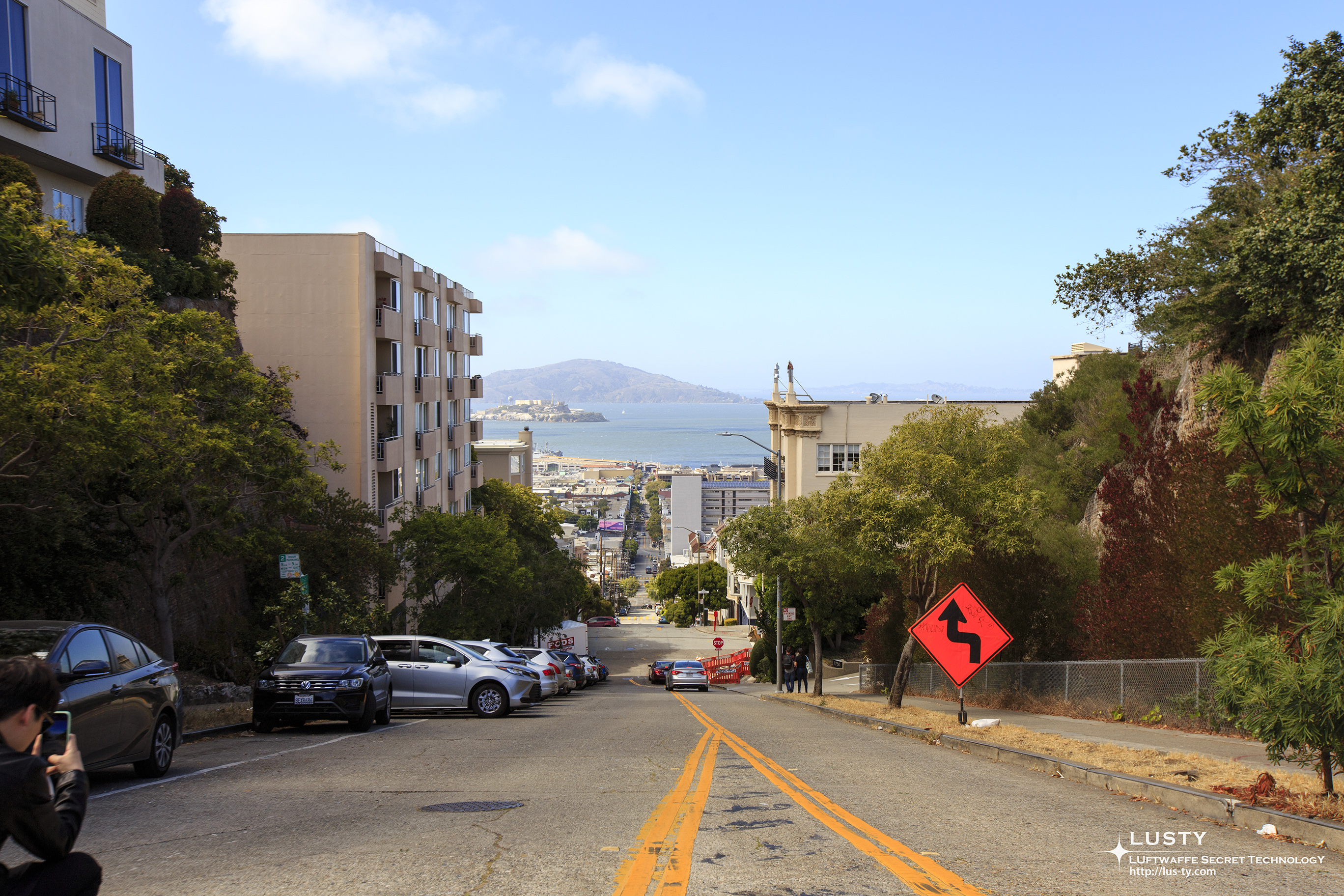 롬바드 가 포인트가 사실 근방에서 가장 높은 부분인데, 커브길 반대쪽으로 저 멀리까지 뻗은 도로가 다 롬바드 가(Lombard Street)이다. 이 도로로 계속 가면 금문교와 직결된다.