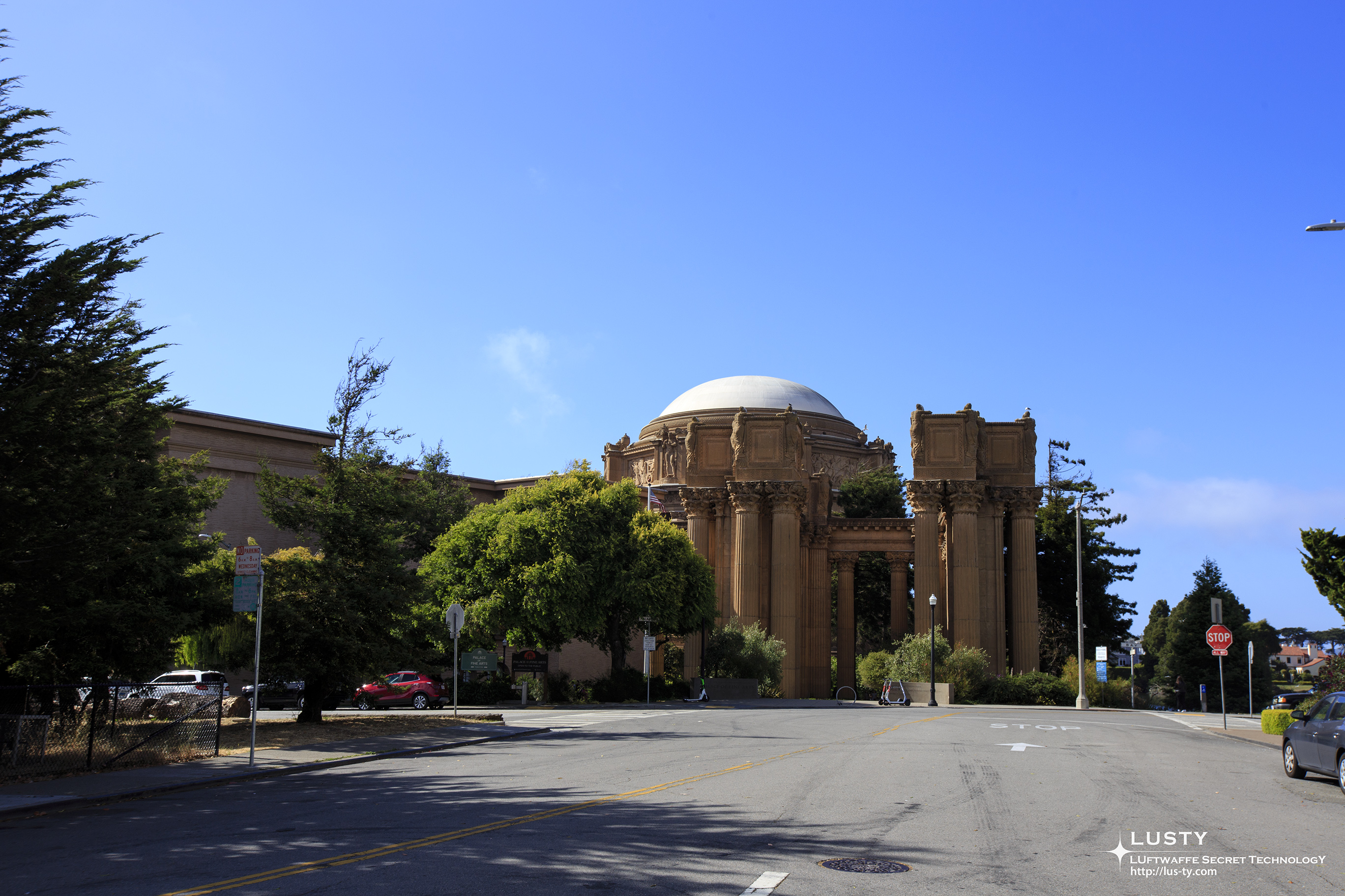 버스를 타고 팰리스 오브 파인 아트(Palace of Fine Arts)로 이동했다. 1915년의 파나마 태평양 국제 박람회에서 예술품들을 전시하기 위해 건축된 건물로, 1974년에 재건축된 고대 로마식 건물이다. 가운데의 원형 돔 건물을 반원형의 아치가 둘러싸고 있는 구조인데, 건물 안에서는 공연이 열리는 경우도 있는 듯 하다. 2022년 7월 현재는 코로나 때문인지 공연같은 건 없는 듯 했다.