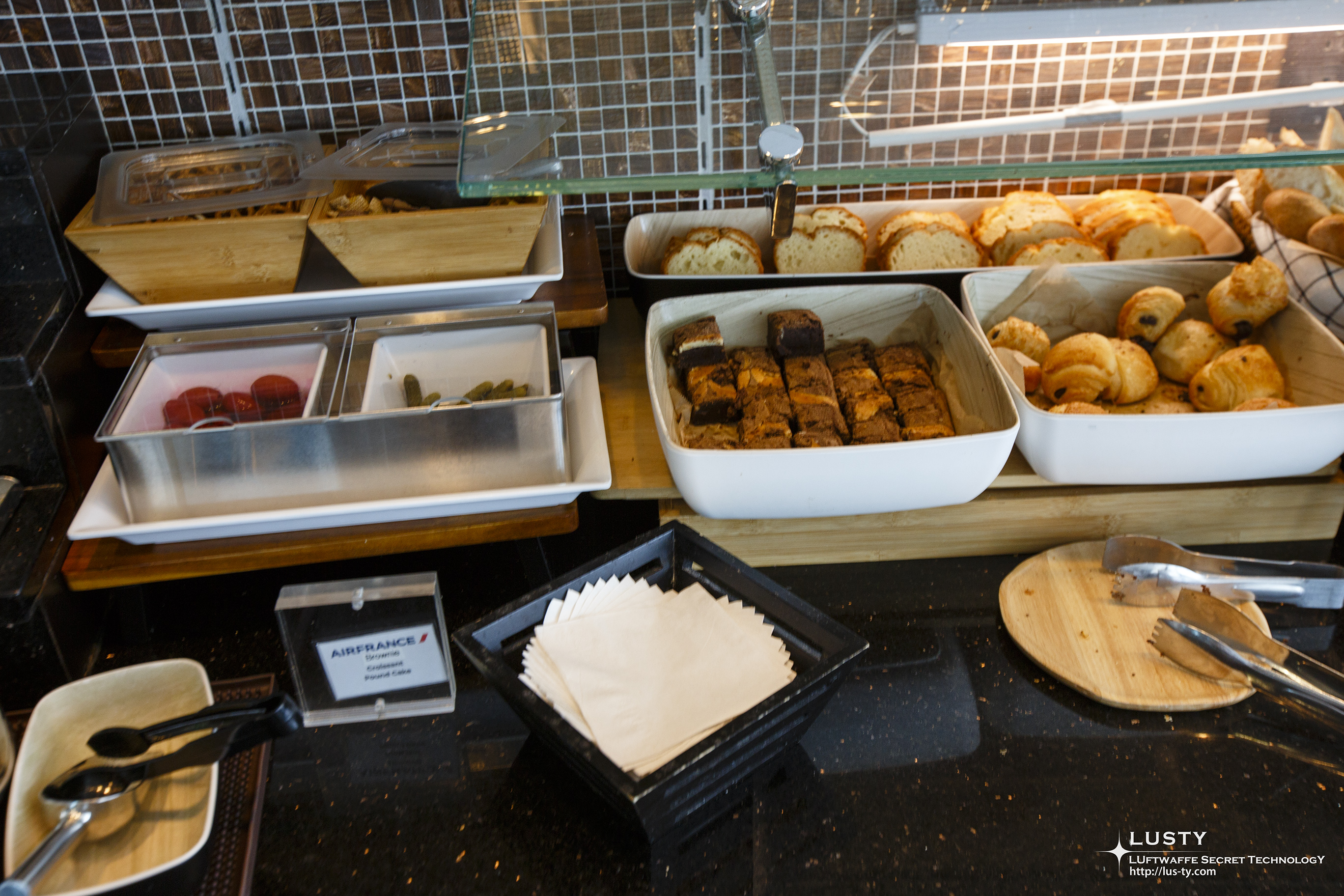 각종 크래커와 빵들. 저 브라우니는 굉장히 달고 맛있었다. 역시 에어프랑스다운...