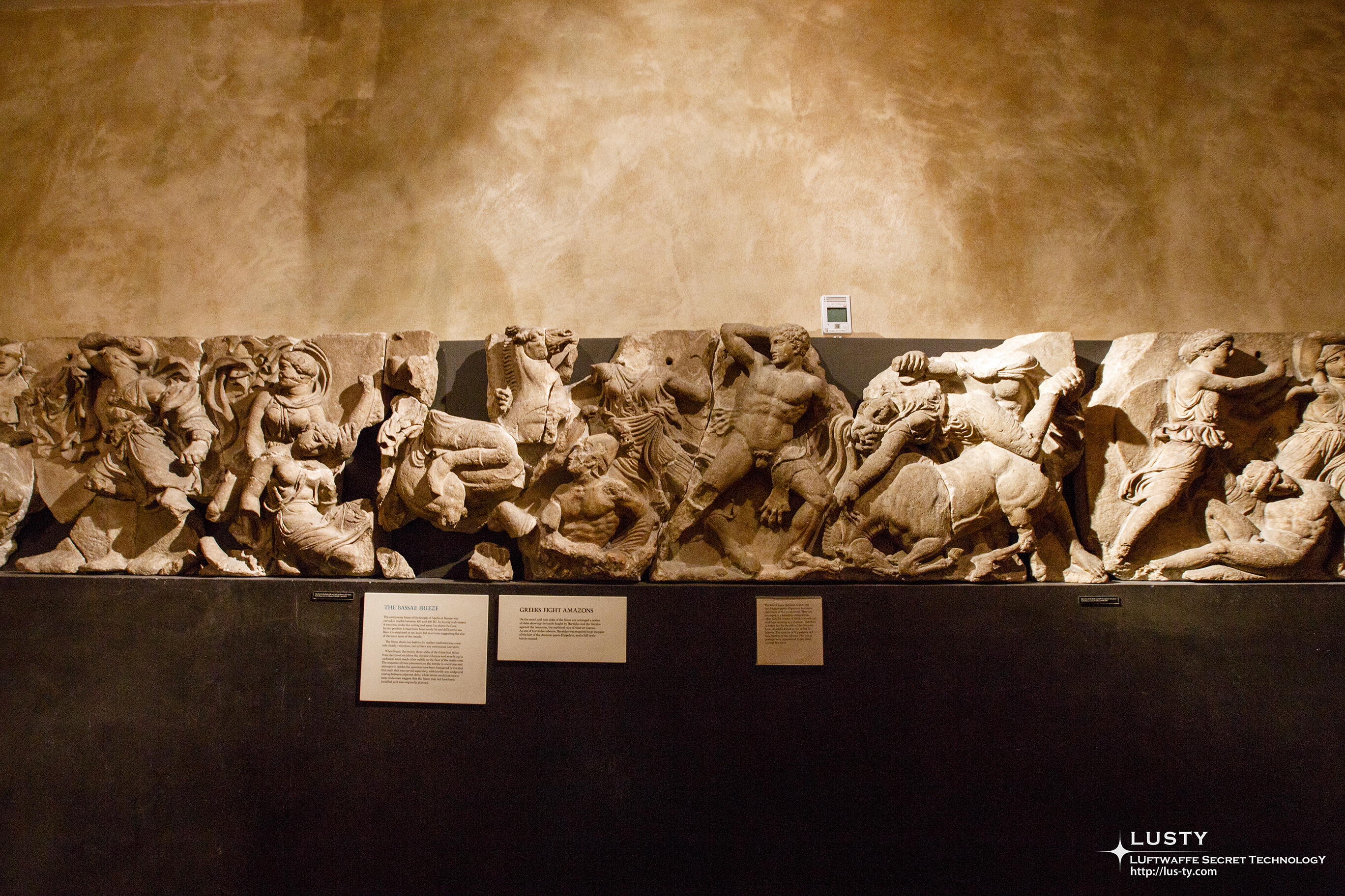이쪽은 밧세 프리즈라고 하는 길이 31m, 높이 0.63m의 23개 패널로 이루어진 대리석 조각들인데, 밧세의 아폴로 에피큐리우스 신전에 있던 대리석들을 가져다 놓은 것이다.
