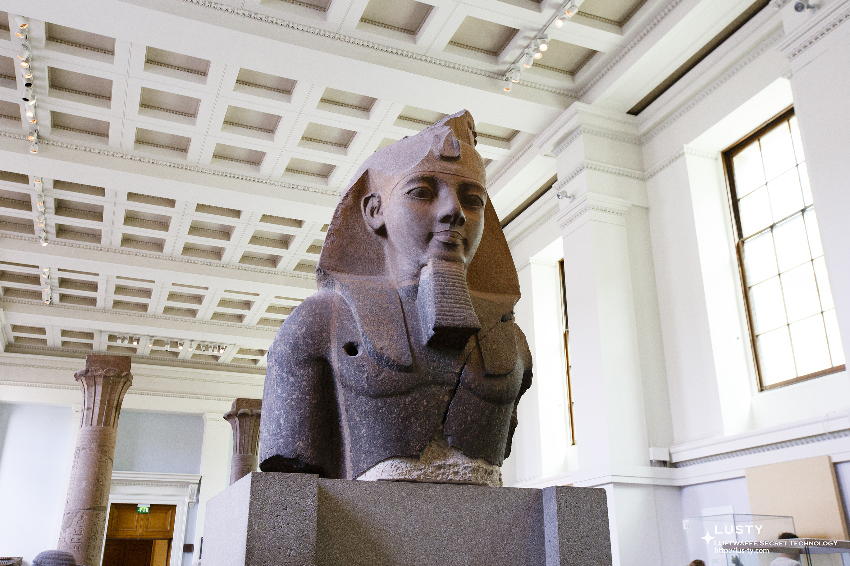 이집트관에 들어서면 바로 보이는 것은 람세스 2세의 흉상으로, 오른쪽 가슴에 뚫린 구멍은 나폴레옹의 병사들이 흉상을 프랑스로 옮기려다가 실패해서 만들어진 것이라는 설이 있다.