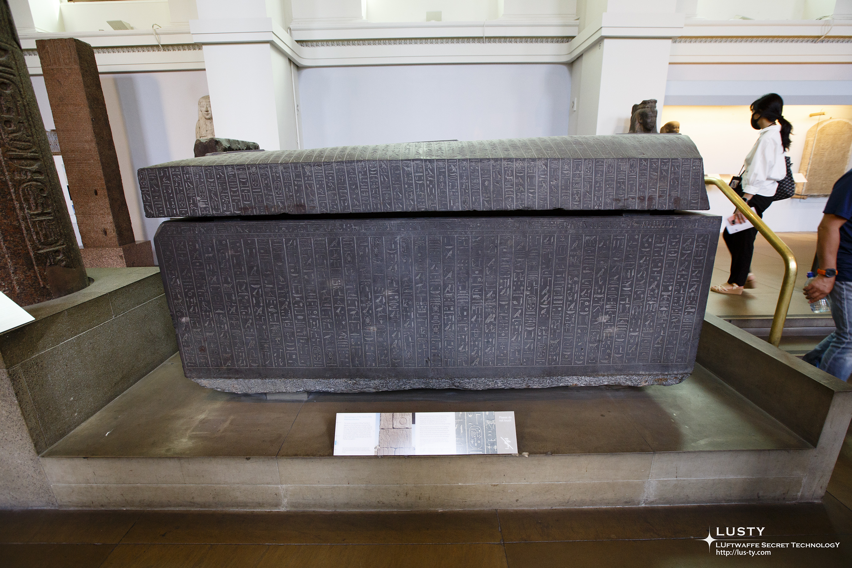 대영 박물관의 전시품 중 가장 유명할 법한 로제타 스톤. 같은 내용의 내용이 상형문자와 간소화된 상형문자인 민중문자, 그리스 문자의 3가지 종류로 적혀있어서 상형문자를 해석할 수 있게 되었다는 돌이다. 프랑스군이 발견했지만 1802년 나폴레옹이 패퇴하면서 이집트에 고립된 프랑스군을 무사히 귀환시켜주는 조건으로 영국군이 받아가서 지금까지도 대영박물관에 전시되어 있다.