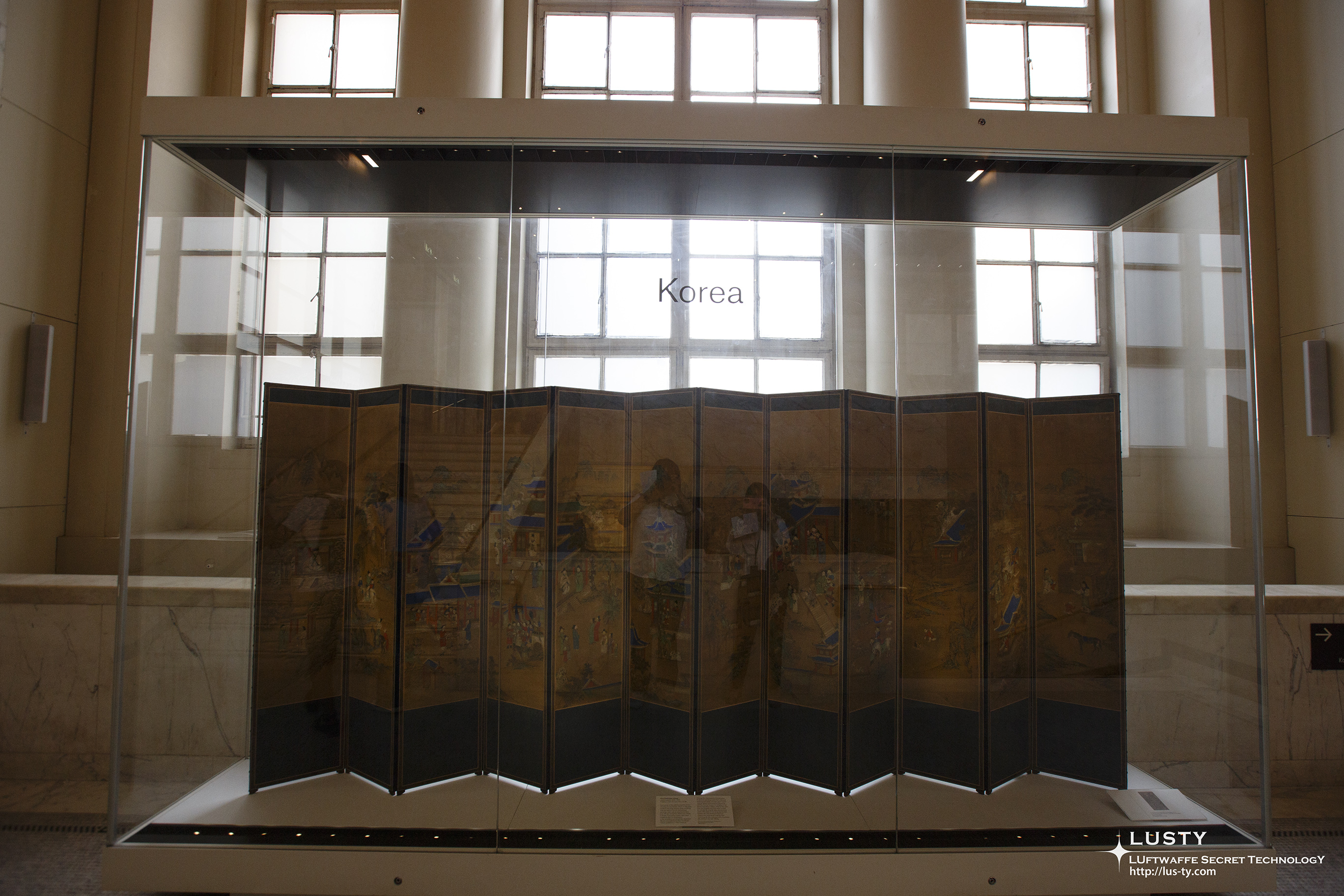 박물관 한 켠에 한국관이 있길래 가 보았다. 입구에는 긴 병풍이 맞아준다.