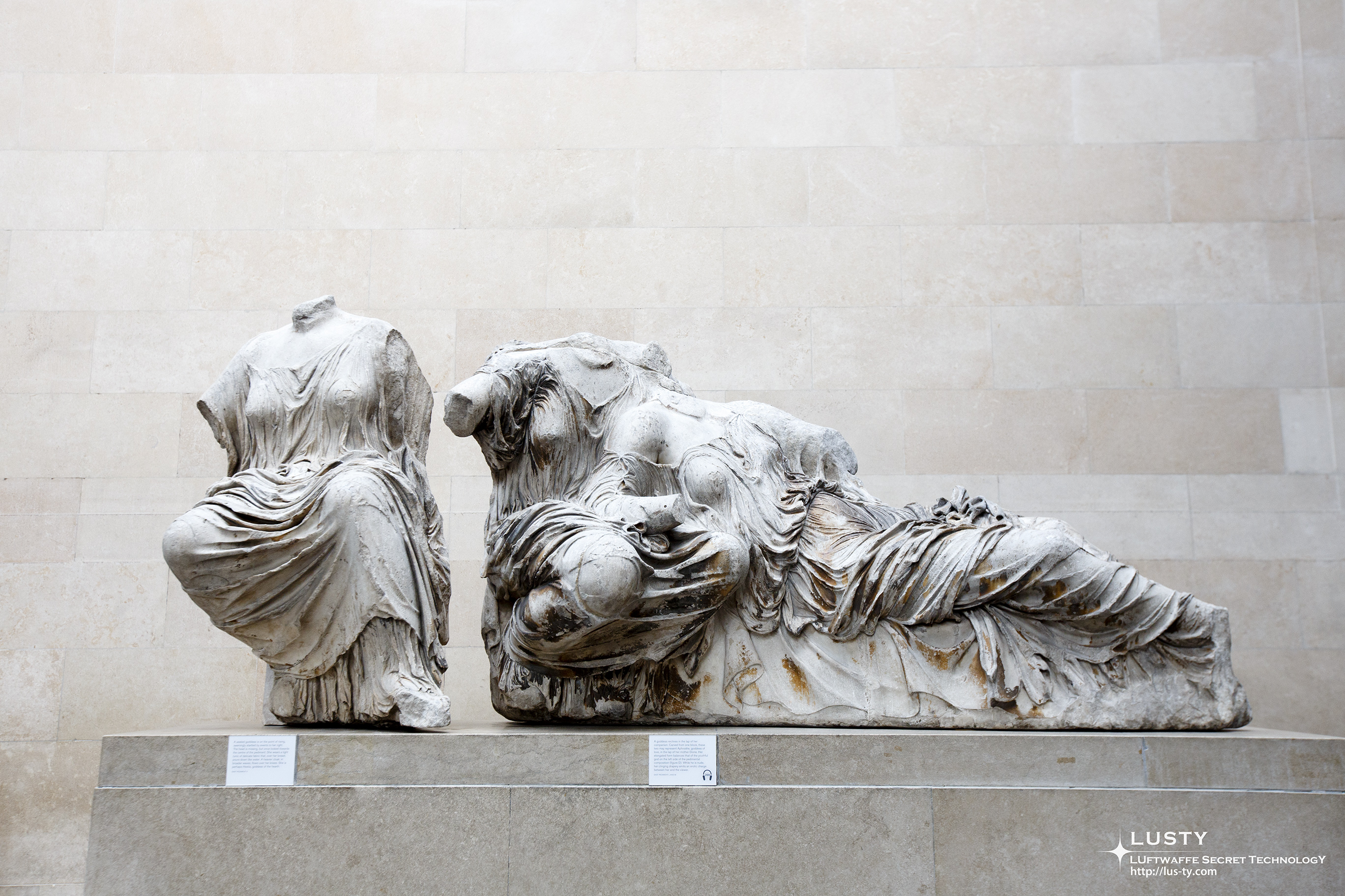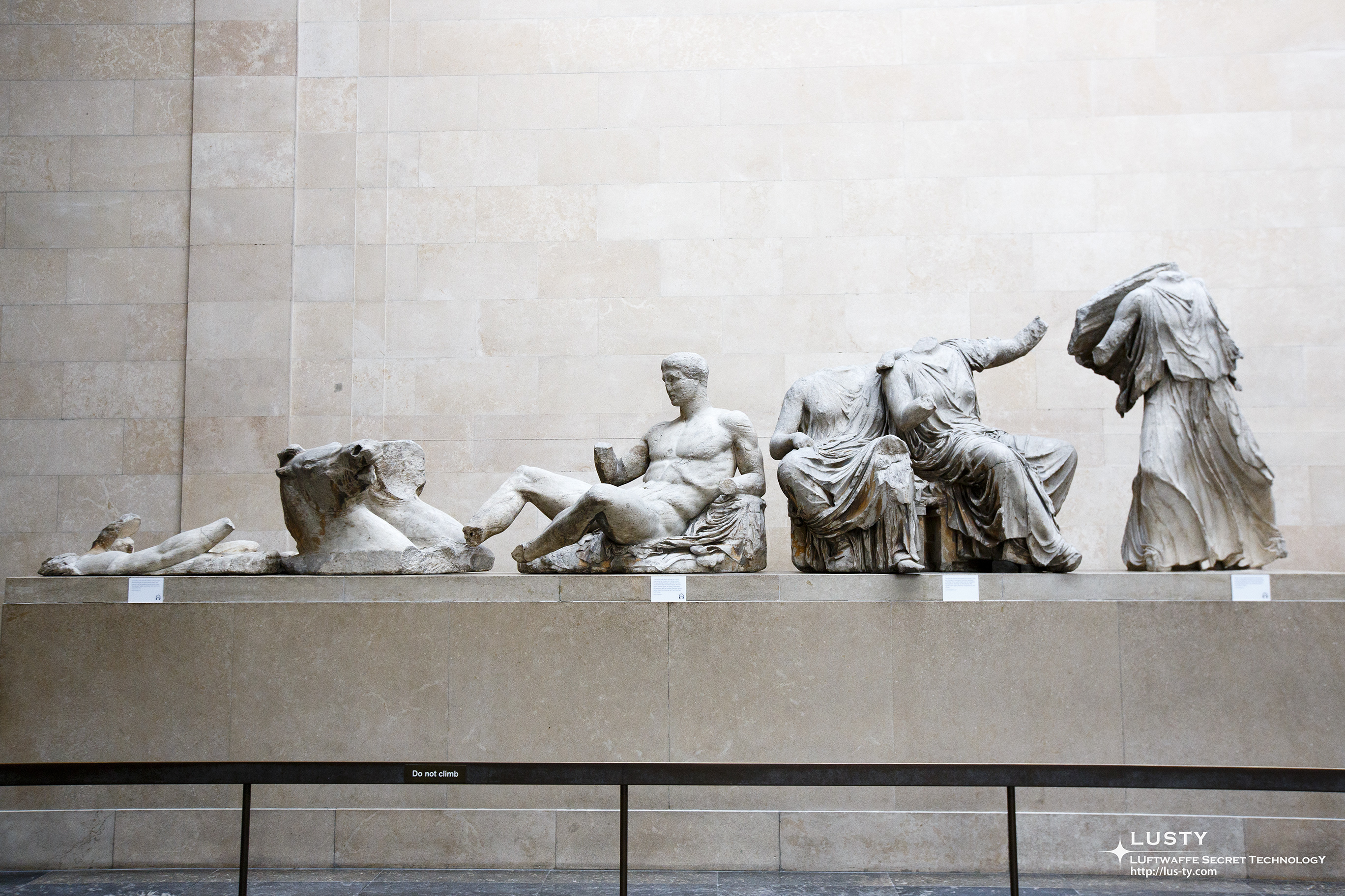 엘긴 마블이라고 하는, 파르테논 신전에 있던 조각상들. 대부분은 5세기에 만들어진 것들이다. 엘긴이라는 이름이 붙은 이유는 7대 엘긴 백작인 토마스 브루스 경에 의해 오스만 그리스의 파르테논 신전에서 가져다 놓은 것이기 때문이다.