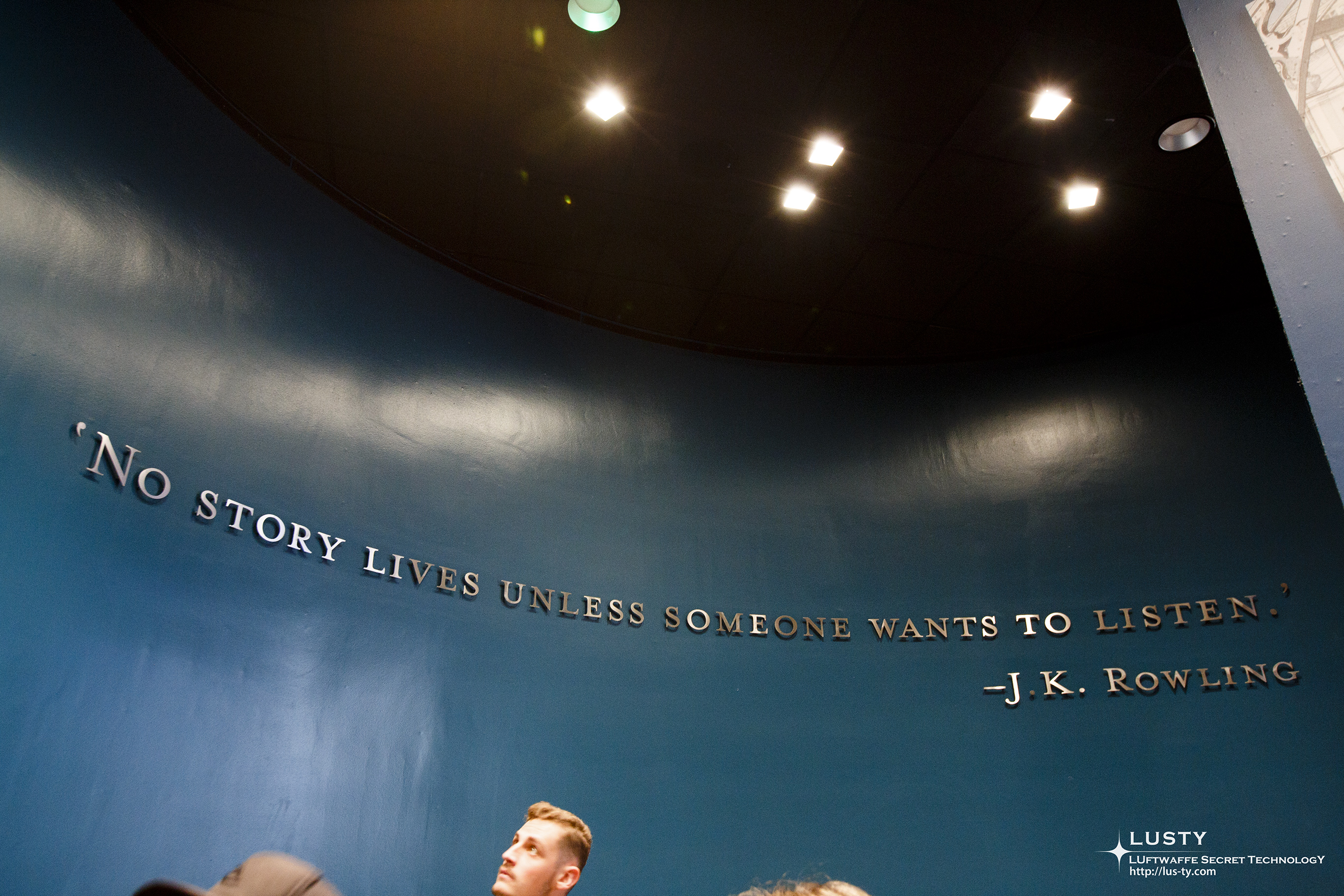 입구에는 "아무도 듣고 싶어하지 않는 한 어떤 이야기도 살아남지 못한다"는 J.K. 롤링의 명언이 써 있다.