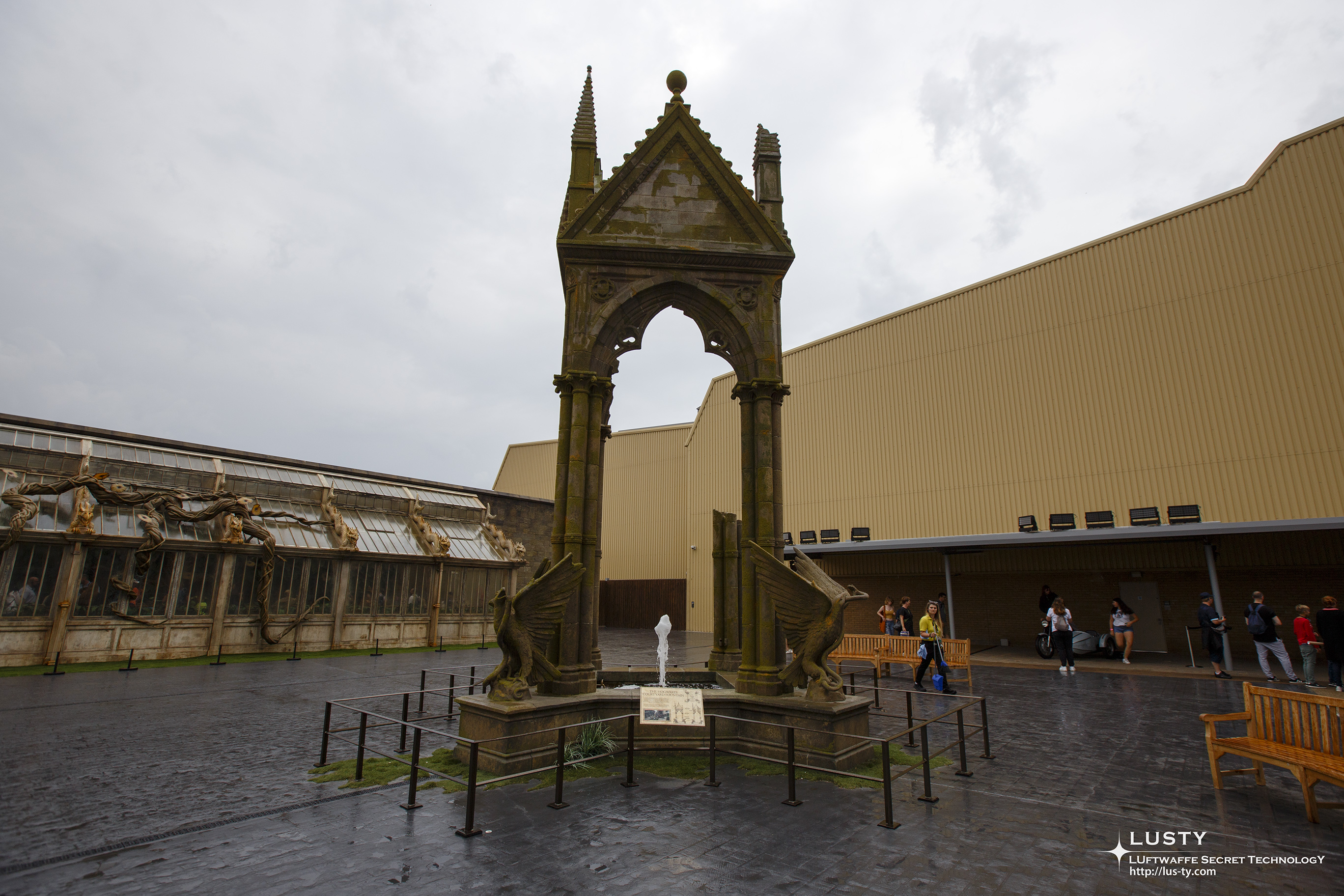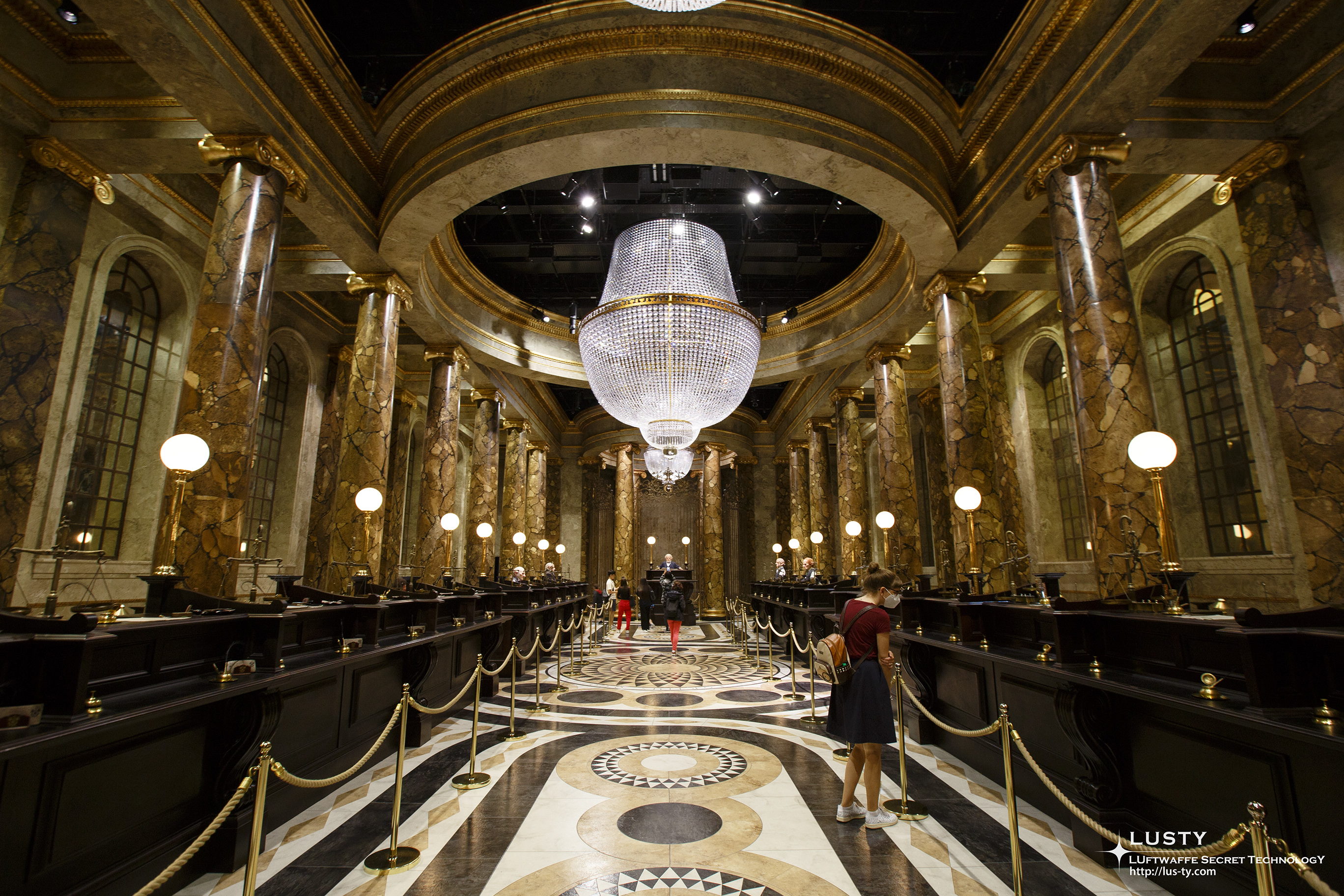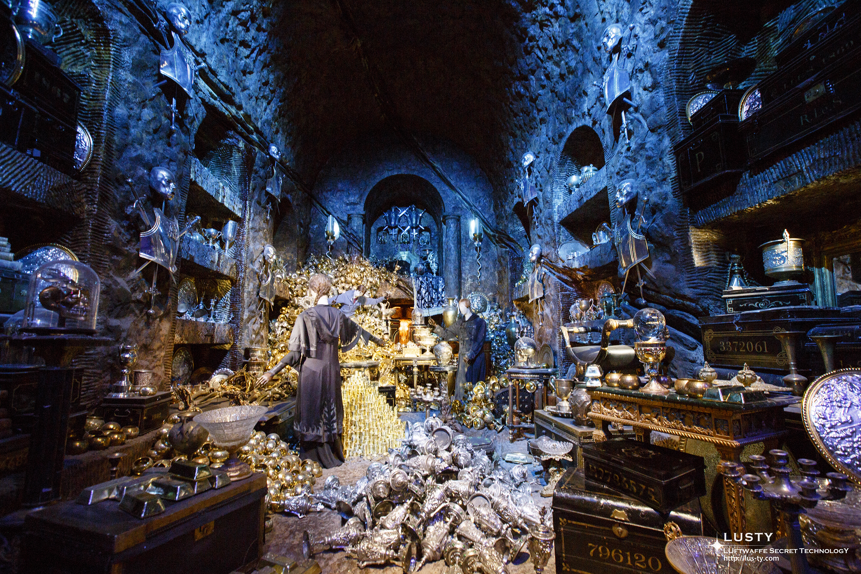 해리가 후플푸프의 잔을 훔쳐 나오면서 타고 나왔던 용이 파괴한 그린고트. 용이 실제로 등장하는데, 상당히 실감나게 재현되어 있다.