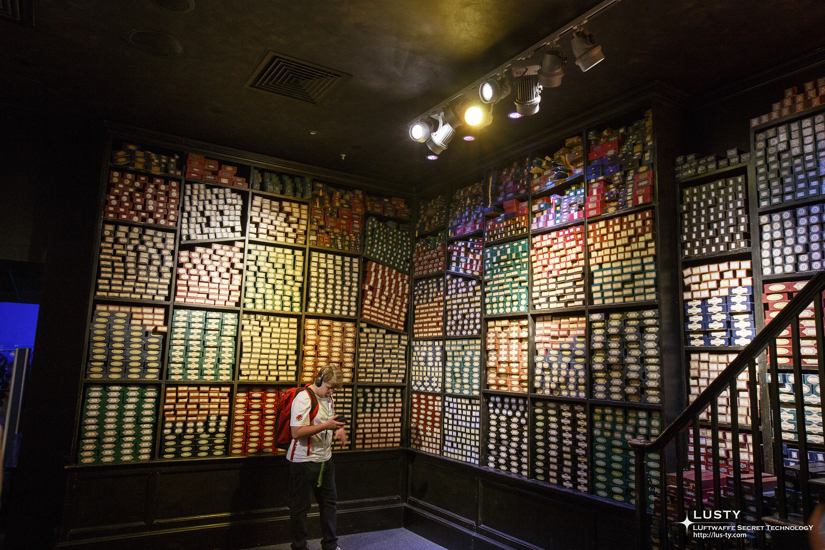 몇몇 장면들은 마네킹까지 곁들여 장식해두었다. 1권에서 온갖 종류의 과자들을 쌓아놓고 먹고 있는 해리와 론의 모습과 허니듀크 과자 가게의 수레를 장식해 두었다.