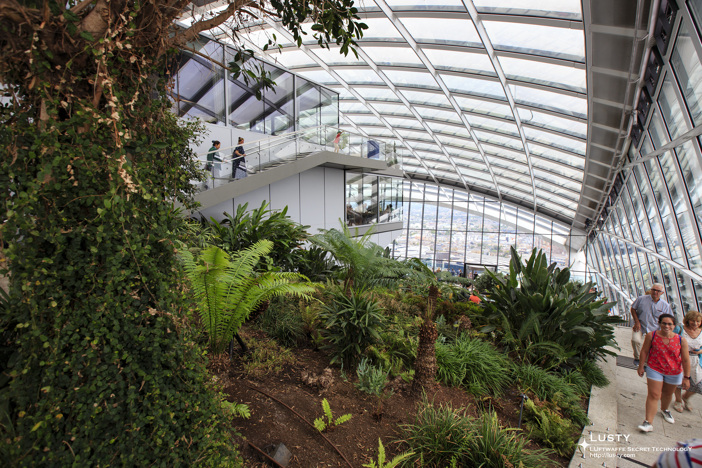 1층에서 엘리베이터를 타면 바로 전망대로 올라오는데, 전망대 내부에는 레스토랑과 식물원이 존재한다. 식물원은 처음에는 천장까지 닿을 정도의 나무를 심을 계획이었지만 취소되고 지금처럼 작은 풀들과 나무를 심는 것으로 바뀌었다.