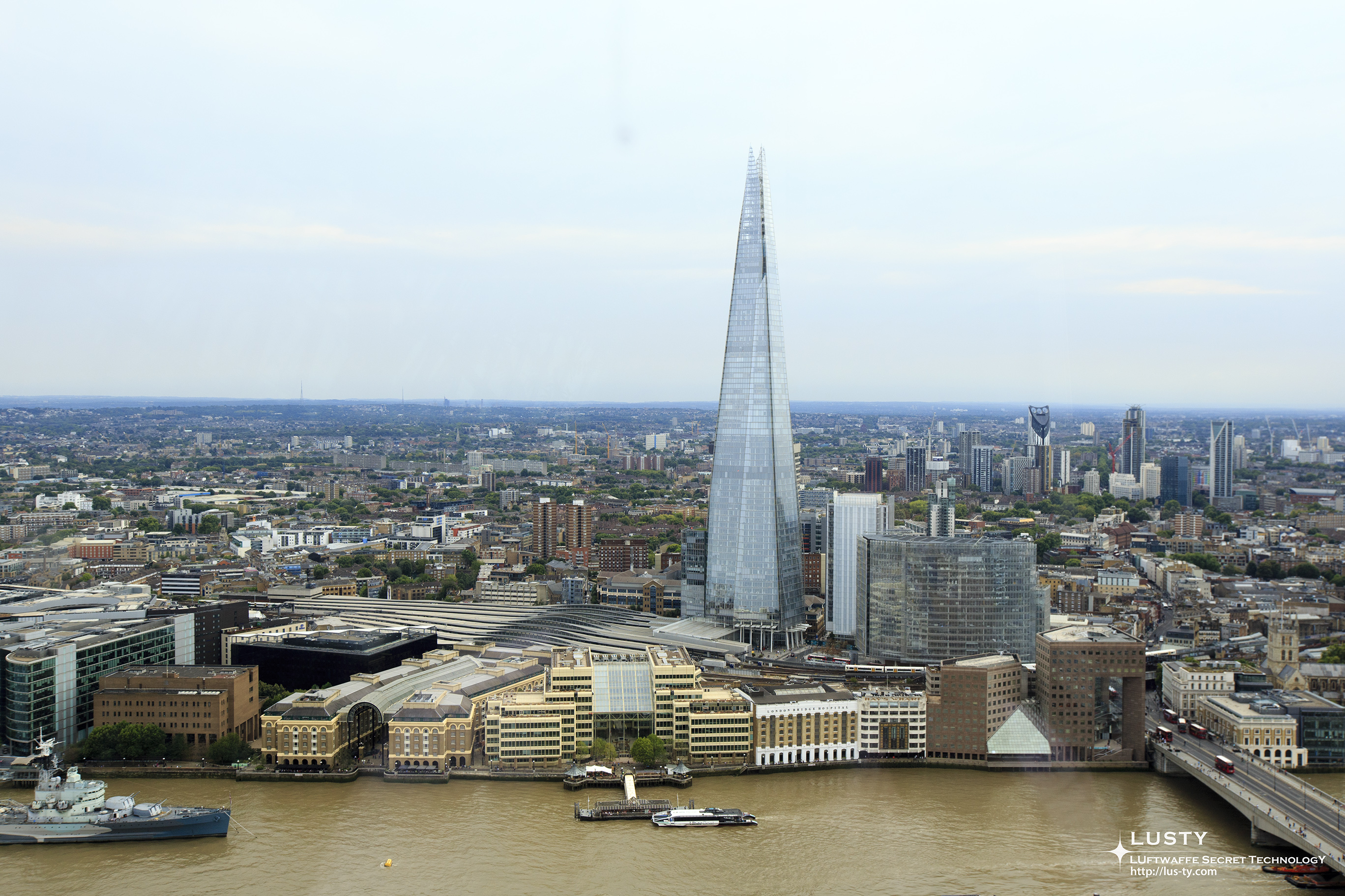 먼저 전망대 바로 앞을 보면 런던에서 가장 높은 건물은 아님에도 불구하고 전망이 꽤 좋다. 템즈 강 북단에 위치하고 있어서 바로 앞에는 템즈 강과 영국에서 가장 높은 건물인 더 샤드를 전망할 수 있다. 더 샤드 아래에 있는 역은 런던 브릿지 역, 그리고 사진 오른쪽 아래의 다리가 런던 브릿지이다.