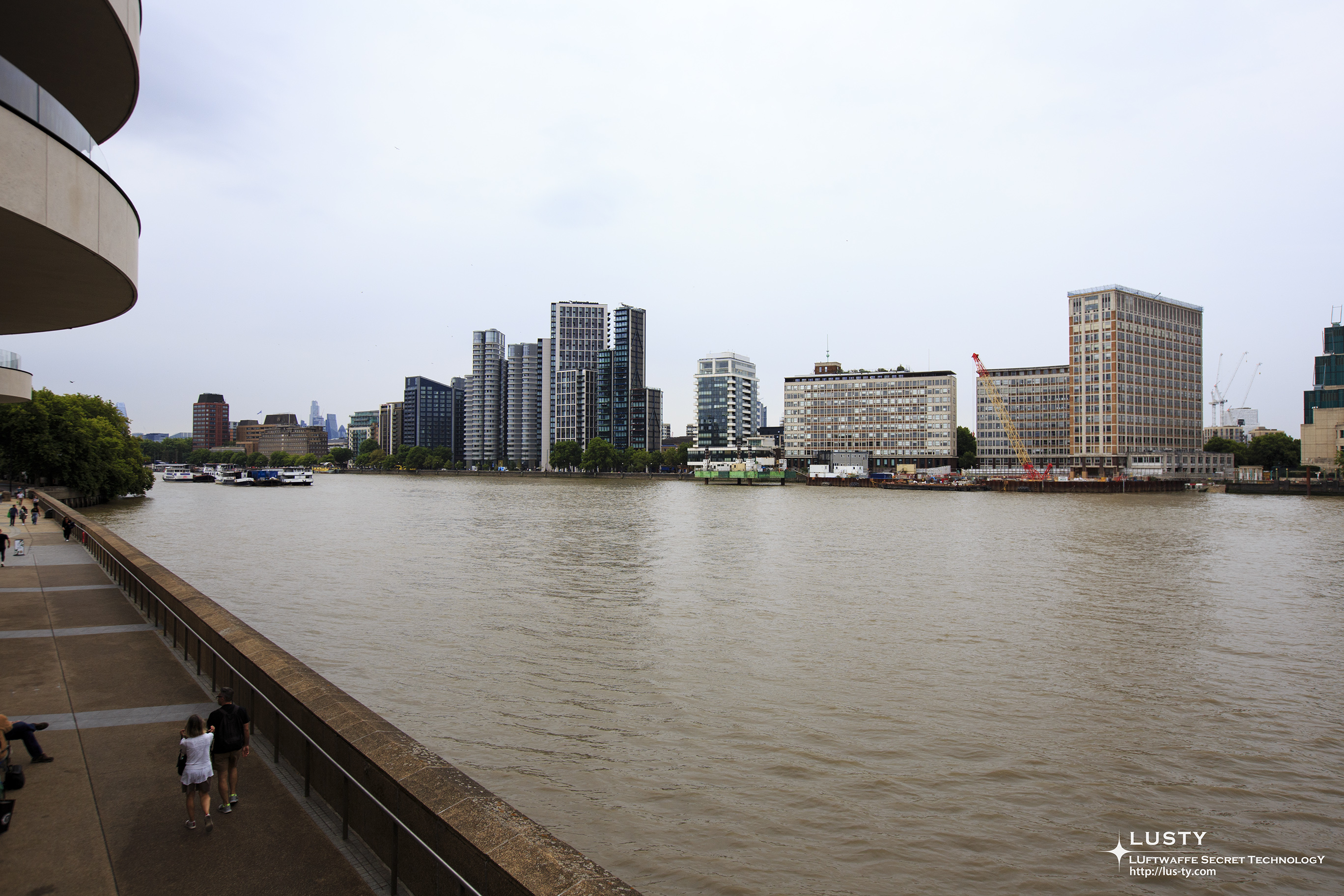 오른쪽을 바라보면 템즈 강을 따라 런던을 조망할 수 있다. 런던 아이는 아쉽게도 여기에서는 보이지 않는 위치에 있지만, 낮은 건물들과 템즈 강에 걸려있는 다리들을 조망할 수 있다.