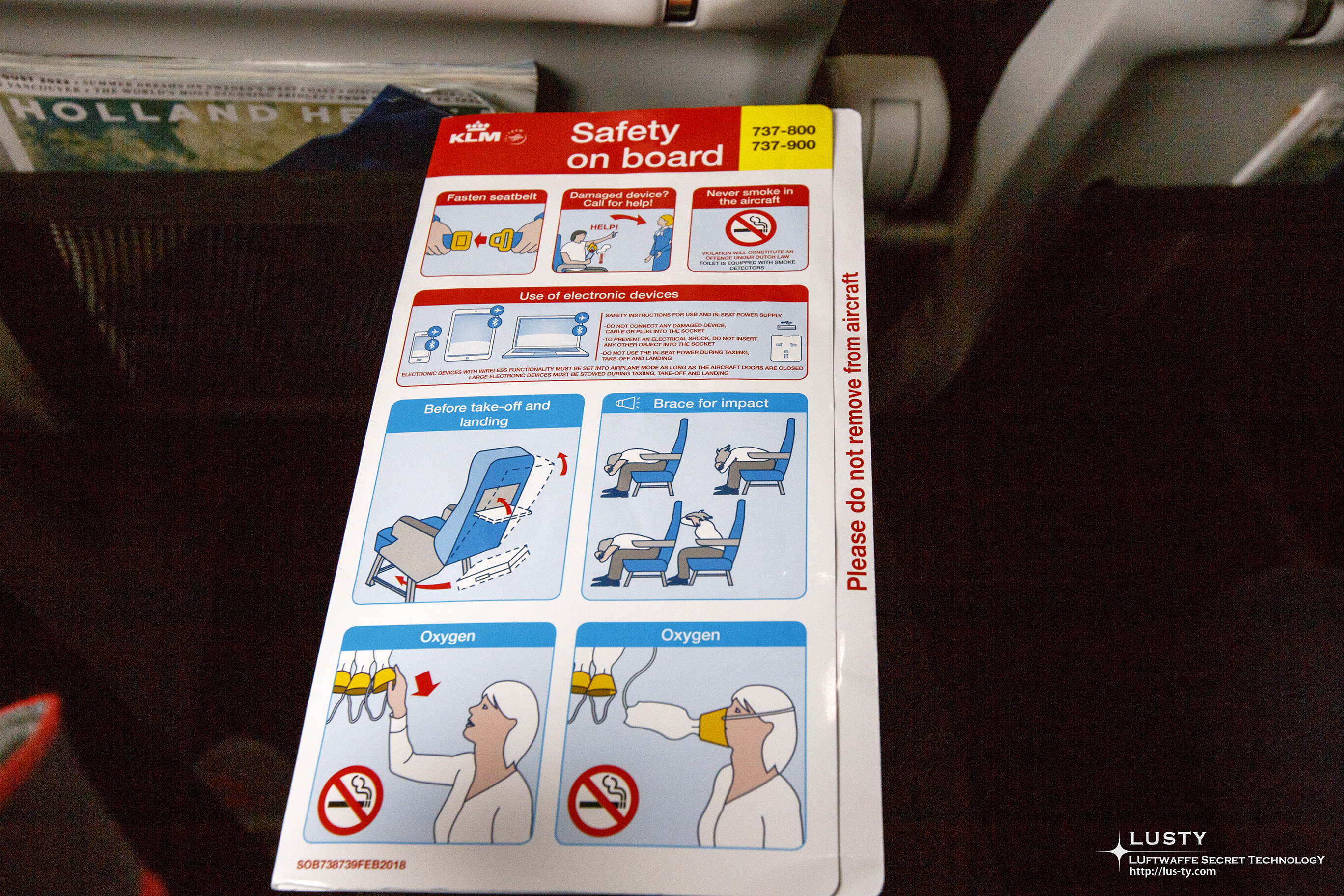 안전 메뉴얼. 기종은 737-800이지만 안전 메뉴얼 책자는 737-800과 737-900이 공용으로 사용하는 듯 하다.