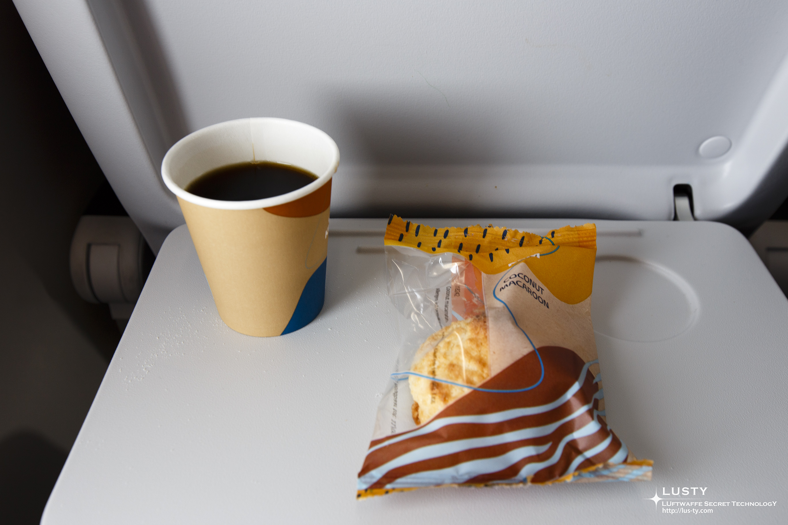30분의 짧은 비행이지만 나름 국제선이기 때문에 먹을게 나온다. 코코넛 마카룬이라는 이름의 코코넛 조각이 박혀있는 비스킷과 스콘 비슷한 빵이었다. 음료는 따뜻한 커피나 오렌지 주스 등이 있었는데, 따뜻한 커피로 했다. 나름 간단한 아침식사로는 괜찮았던 것 같다. 이미 호텔에서 많이 먹고왔지만.