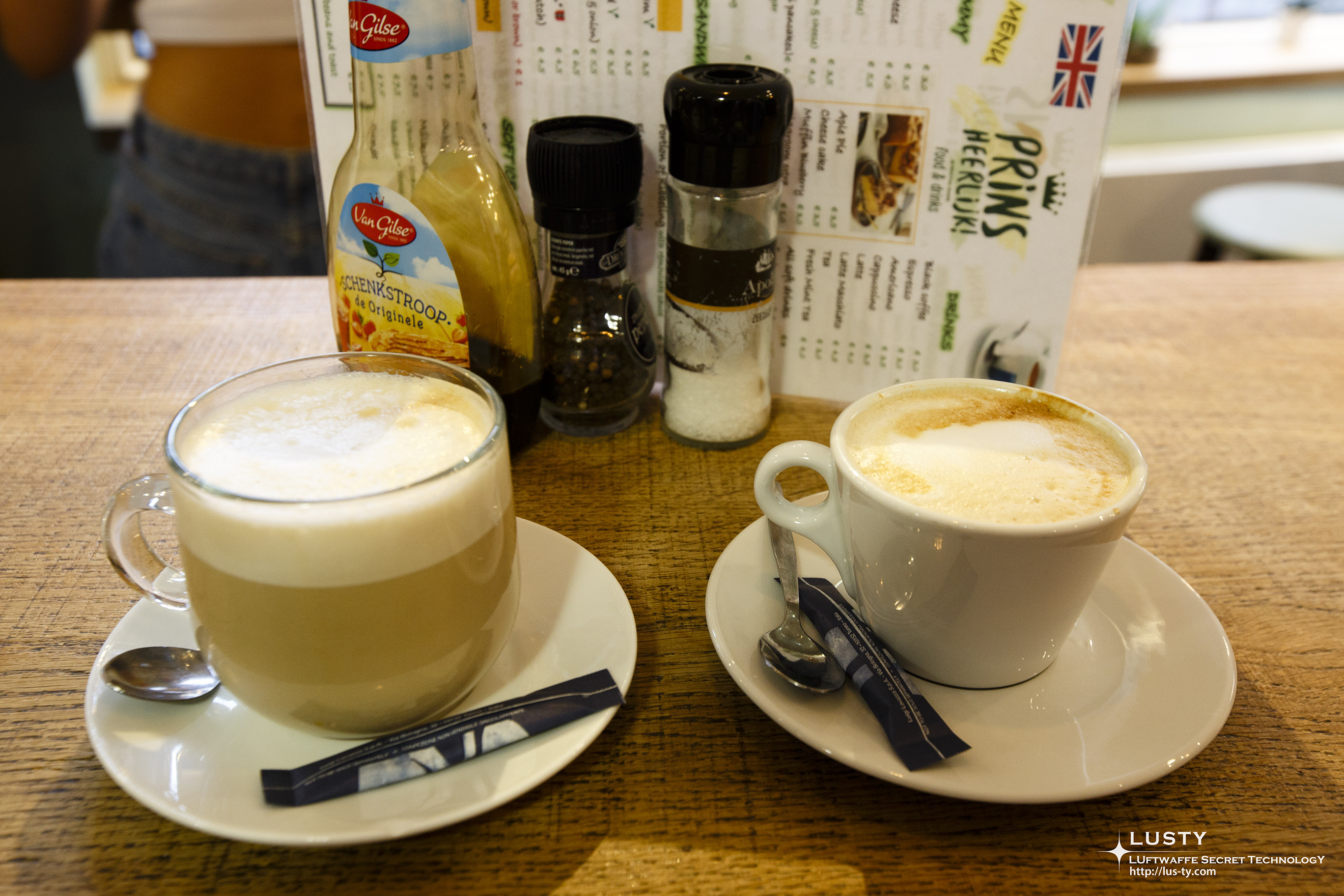 라떼와 카푸치노. 비에 살짝 젖은 옷을 말리며 마시기에 좋았다.