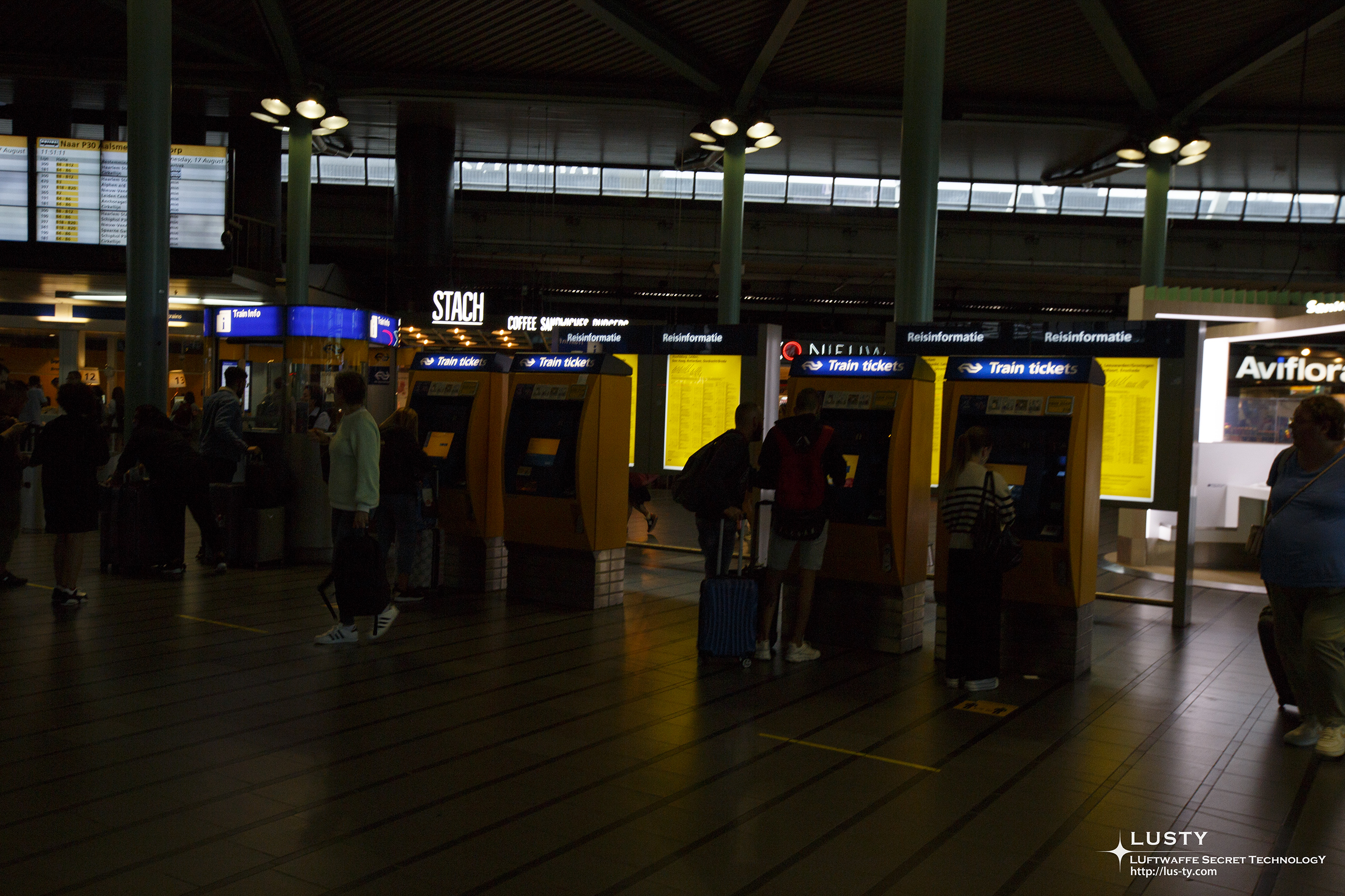 사진이 상당히 어둡게 찍히긴 했지만, 입국심사장을 나와서 공항 로비로 오면 이런식으로 바로 암스테르담 공항역과 연결되어 있는데 공항 로비에서 기차표를 사서 내려가면 바로 기차를 탈 수 있는 구조였다.