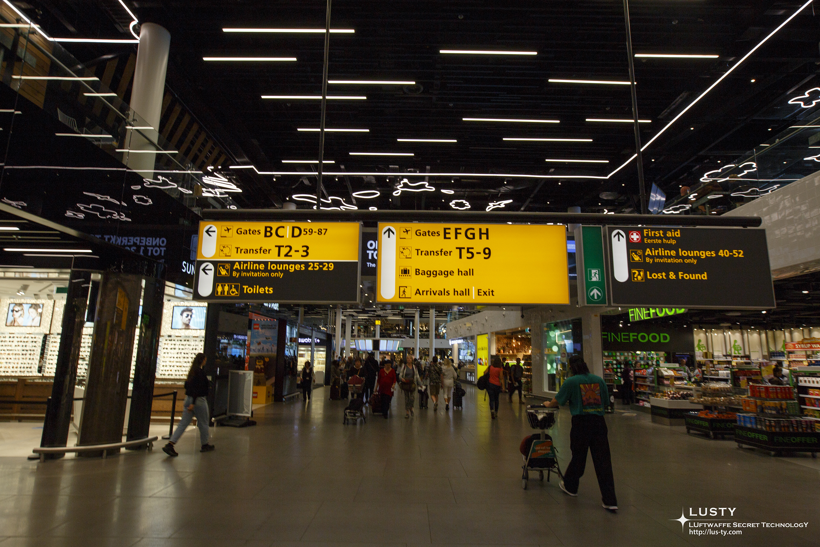 암스테르담 공항은 출국장과 입국장이 분리되어 있지 않다. 그래서 쉥겐으로 입국하게 되면 입국심사 전에 쉥겐에서 출국하는 객들과 뒤섞이게 된다. 미국의 공항들과 조금 비슷한 면이 있는데, 미국도 국내선은 출국장과 입국장이 분리되어 있지 않은 경우가 많지만 국제선의 경우는 밀입국 등을 막기 위해서 출입국 동선이 완전히 분리되어 있고, 테러의 위협에 오랫동안 시달렸던 한국에서는 꿈도 못 꿀 동선이다. 이런 경우에 면세점은 어떤식으로 운영되는지 궁금했지만 미처 확인하진 못했다. 나중에 알았지만 또 비쉥겐지역에서 들어온 객들이 쉥겐지역으로 가는 비행기를 환승하기 위해서는 입국심사를 한 번은 거쳐야 하는 구조긴 했다.