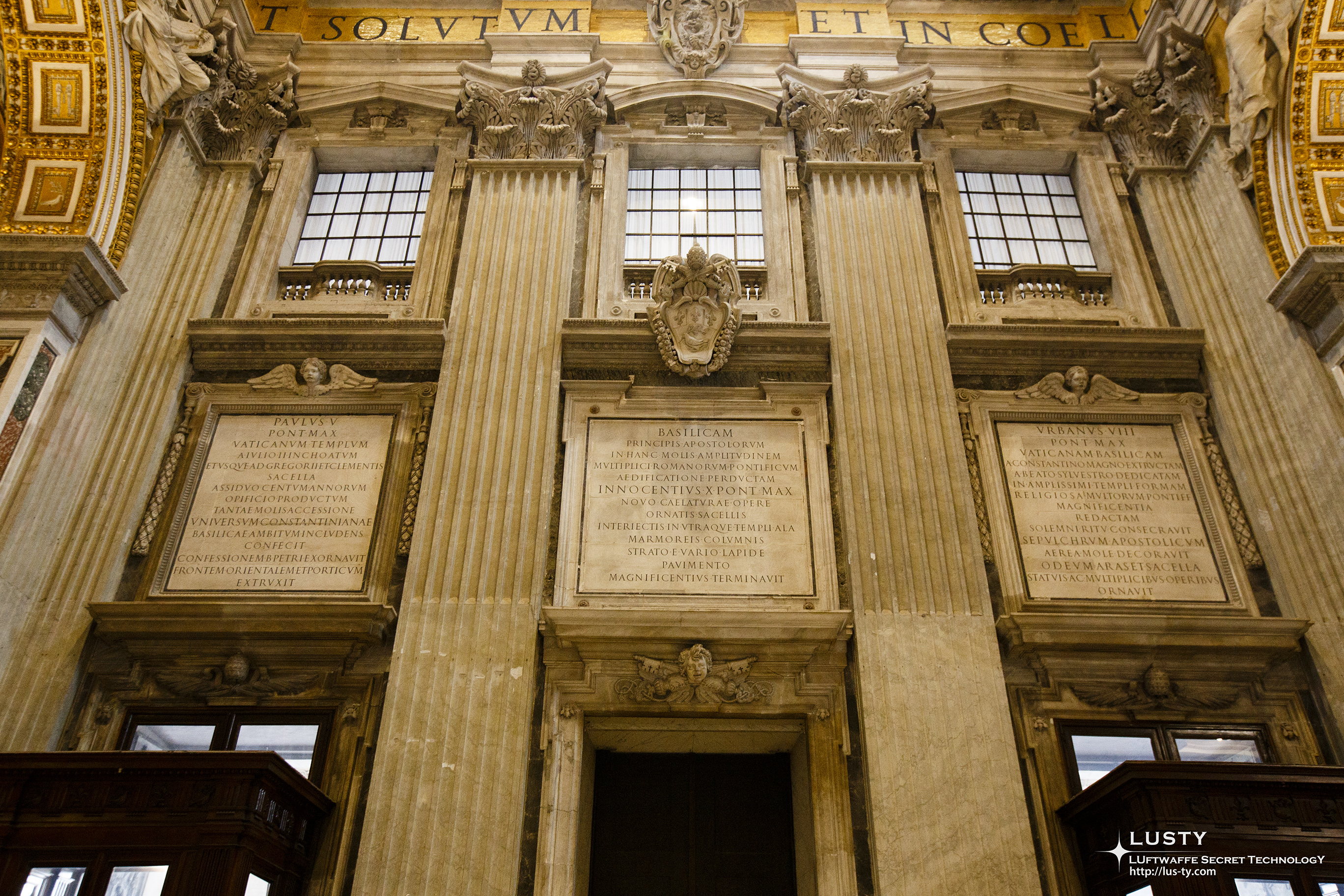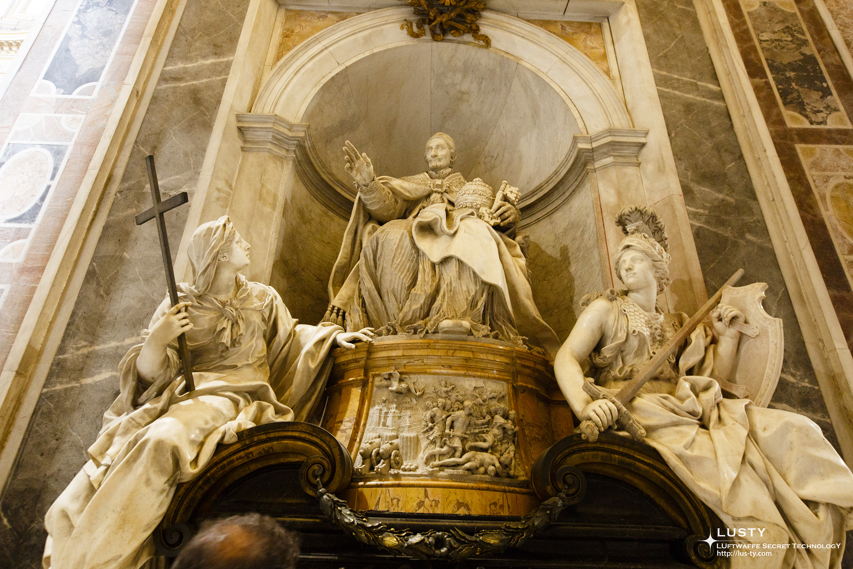 교황과 관련된 작품도 많은 편이다. 위 작품은 교황 그레고리오 13세 기념비로, 조각가 카밀로 루스코니(Camillo Rusconi)에 의해 제작되었다. 그레고리오스 13세는 율리우스력을 수정하여 그레고리력을 제창한 교황으로 잘 알려져 있다.
