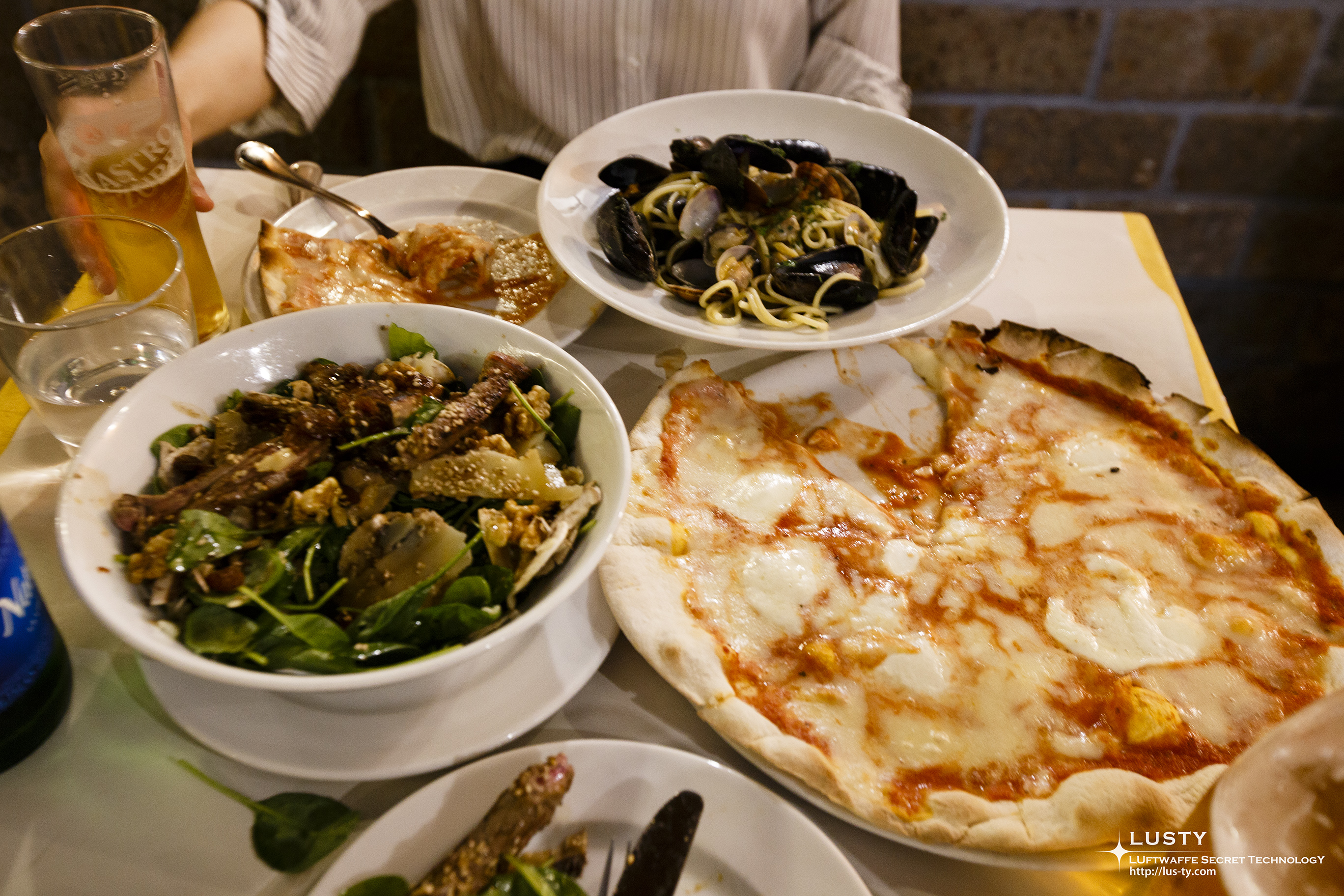 가이드님이 추천해주신 메뉴로 직행. 피자 파스타 샐러드라고 하는 단순한 조합인데, 조금 많이 시켜버리긴 했다.