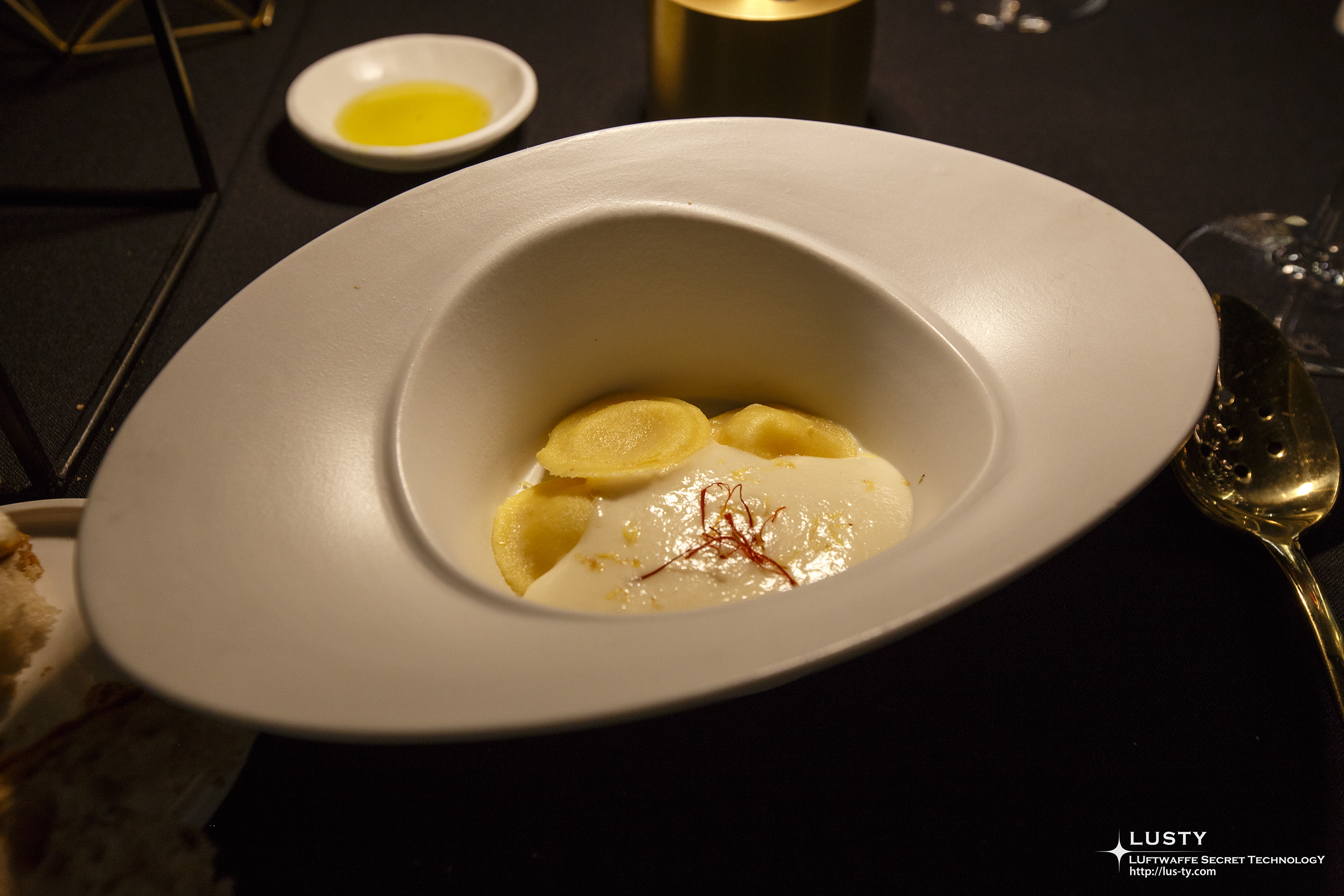다음 메뉴는 레몬제스트와 사프란이 들어간 카펠레티를 사용한 파스타. 반죽 안에 속이 들어간 메뉴들이 연속으로 나온다.