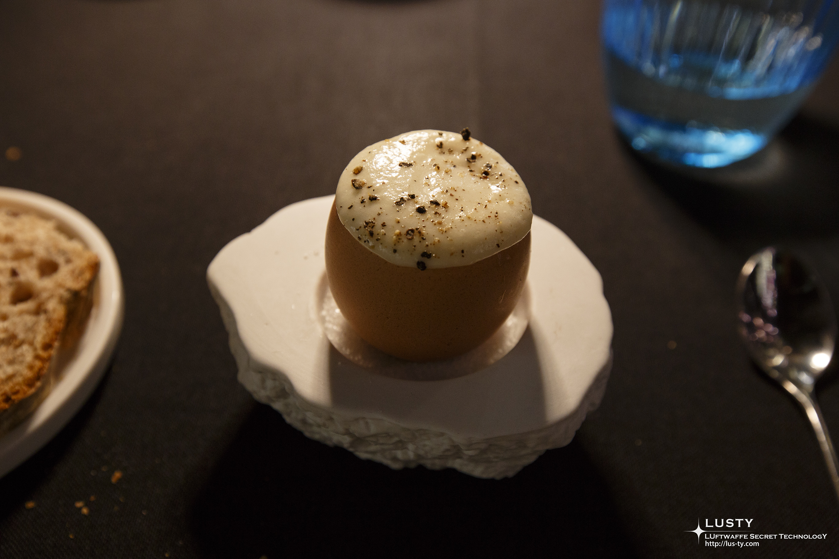 계란껍질 안에 까르보나라에서 파스타만 뺀 요리를 숟가락으로 먹게 되는데, 포크로 먹는 파스타를 면 없이 숟가락으로만 맛보는 행위가 굉장히 비일상적인 경험이었다.