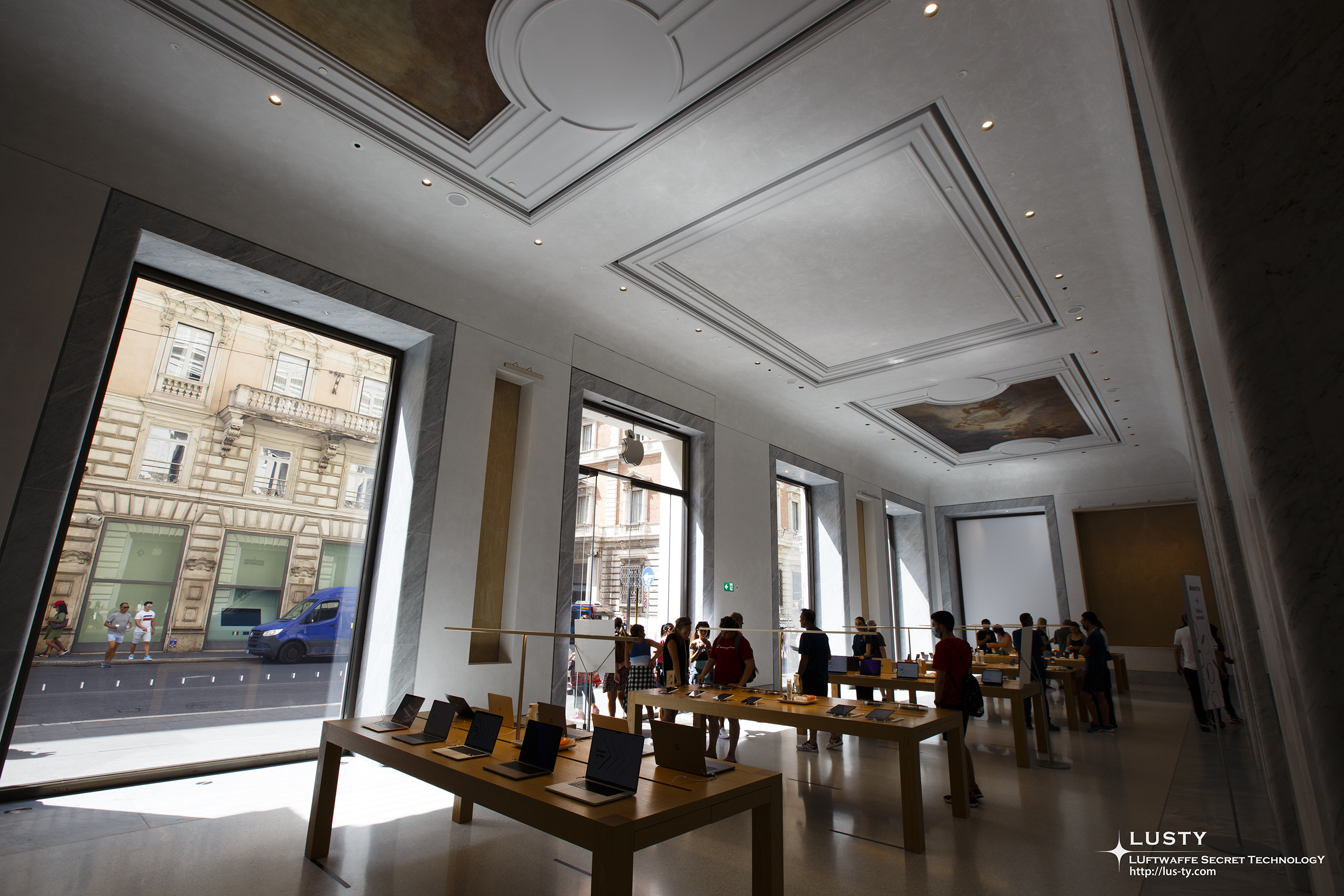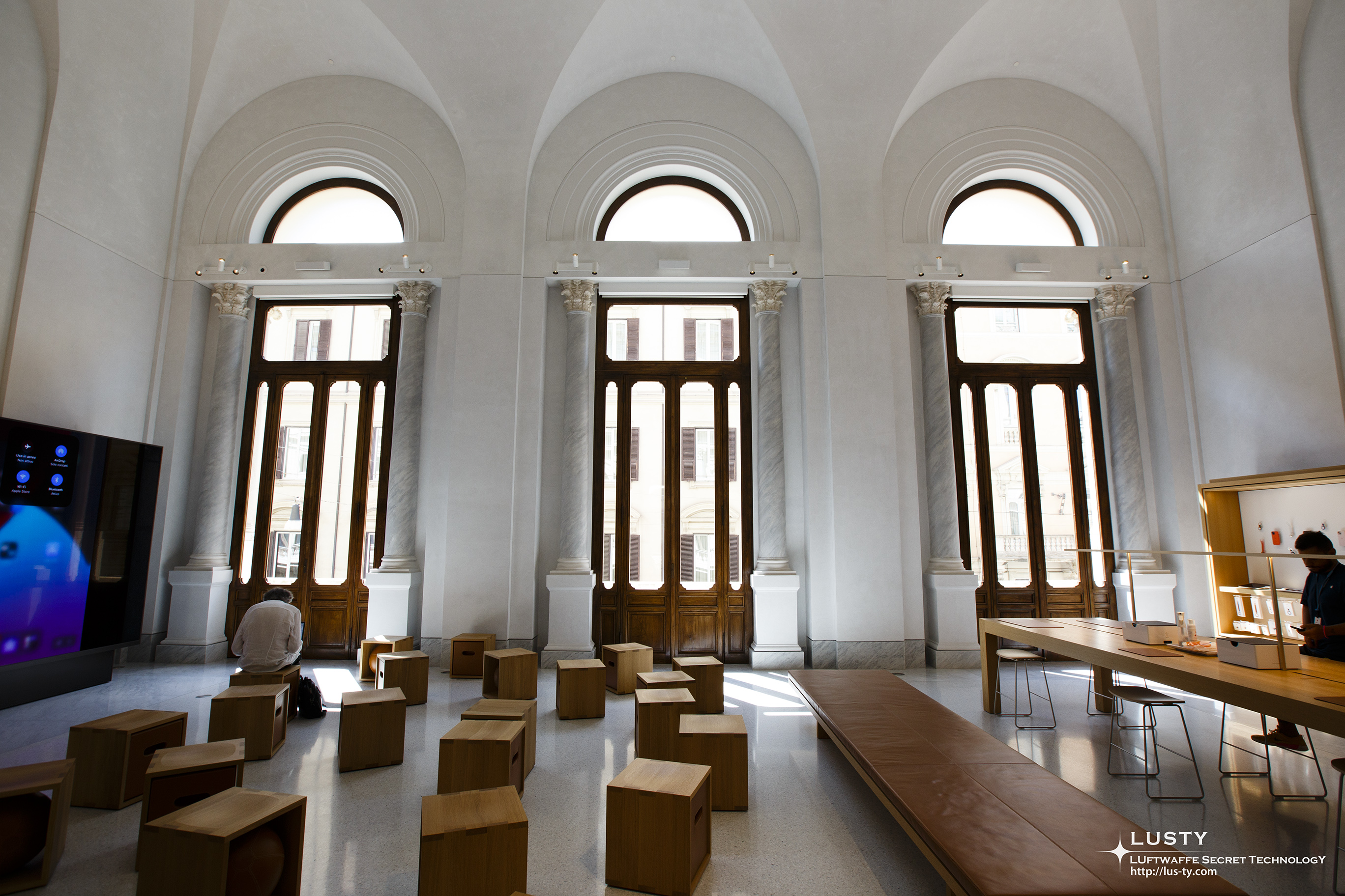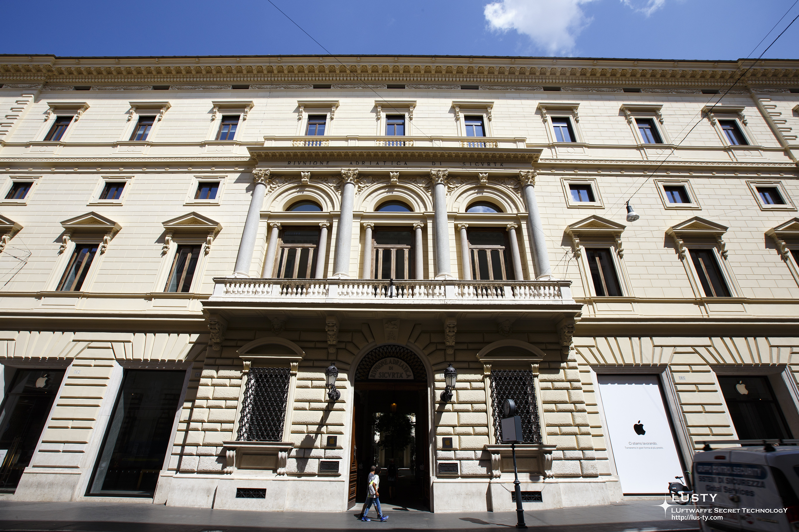 이 애플 스토어는 코르소 거리에 위치한 마리뇰리 궁전(Palazzo Marignoli)을 리노베이션해서 만들어졌으며 정식 이름은 애플 비아 델 코르소(Apple Via del Corso)라고 한다. 1870년대에 지어진 건물로, 천년 이상의 건물이 발에 채이는 로마에서는 그렇게 오래된 건물은 아니지만, 필리포 마리냐넬리(Filippo Marignoli)의 저택, 카페 디 로마(Caffè di Roma) 등으로 사용되었던 역사가 있다.