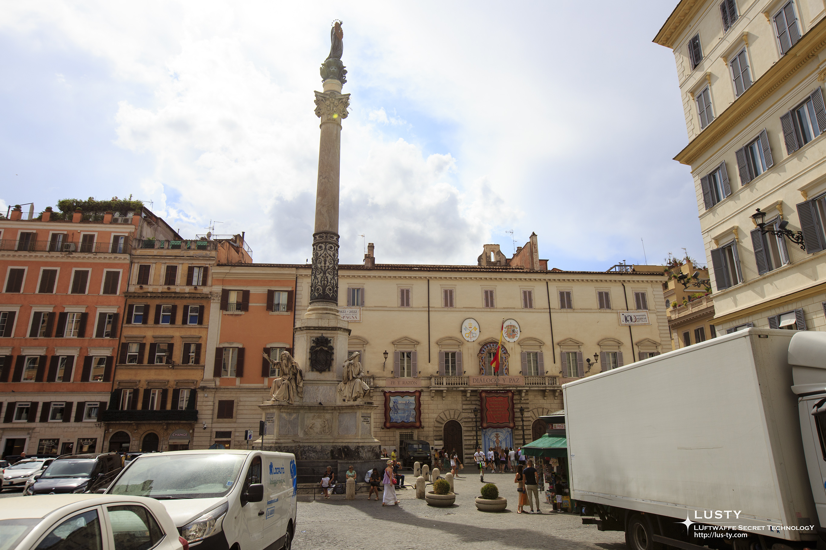 스페인 광장에 도달했다. 앞에 보이는 것은 성모의 원주와 주 교황청 스페인 대사관이다.