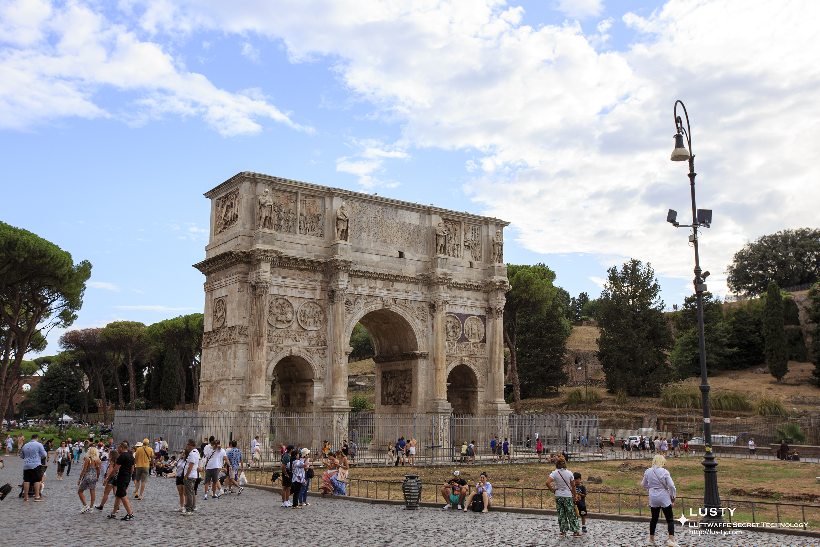 콜로세움 옆에 있던 콘스탄티누스 개선문. 312년 밀비우스 다리 전투에서 콘스탄티누스가 막센티우스를 물리치고 승리한 것을 기념하기 위해 세워진 개선문으로 높이는 21m, 폭은 26m이며 로마에 현존하는 개선문 중 가장 큰 규모를 자랑한다.