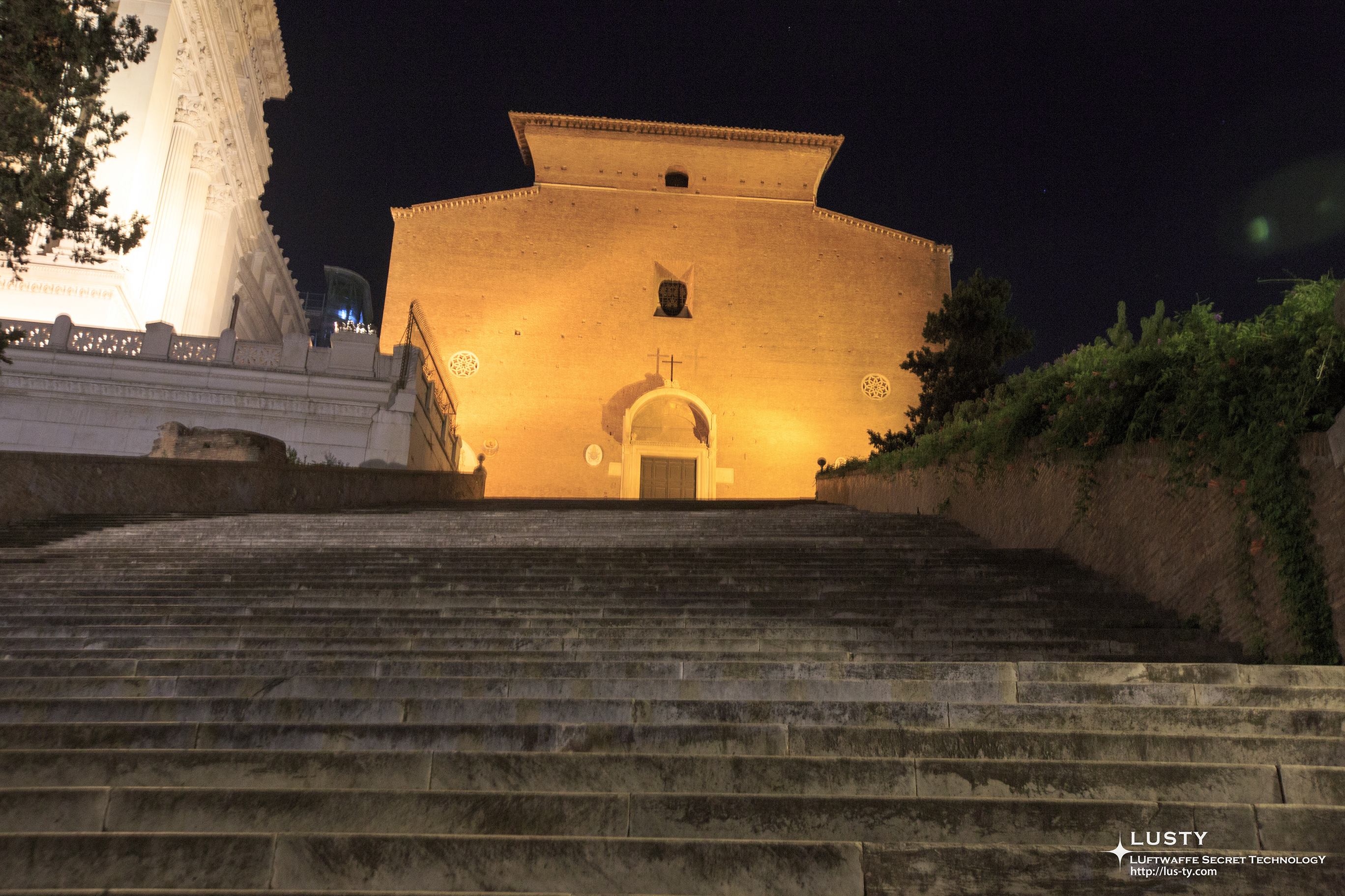 조금 걸어서 캄파돌리오 언덕 쪽으로 이동한다. 산타 마리아 대성당으로 가는 계단을 올려다보면 낮과는 또 다른 느낌인데, 벽 전체에 조명이 비추어져서 굉장히 따뜻한 느낌을 준다.